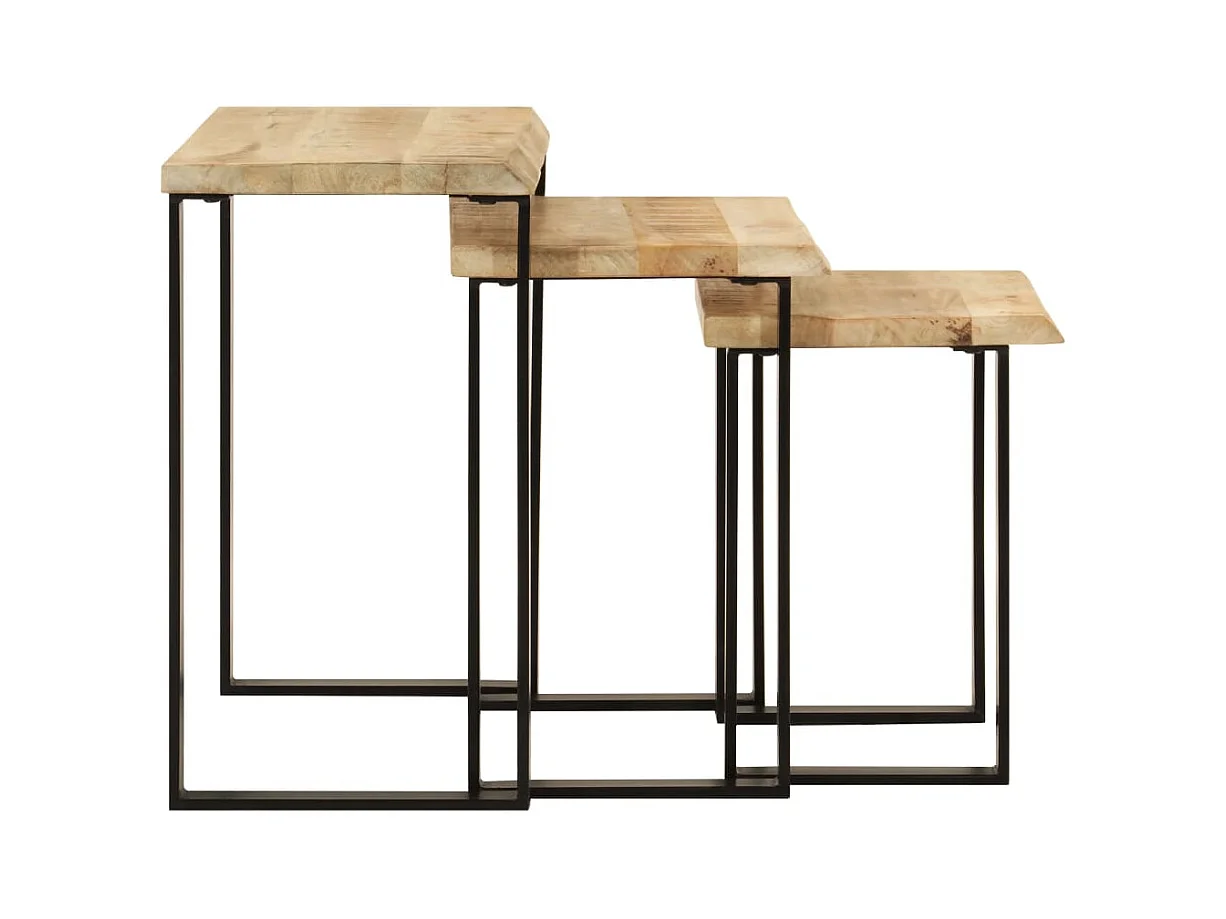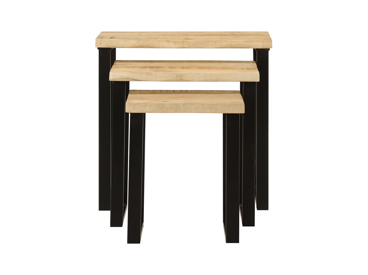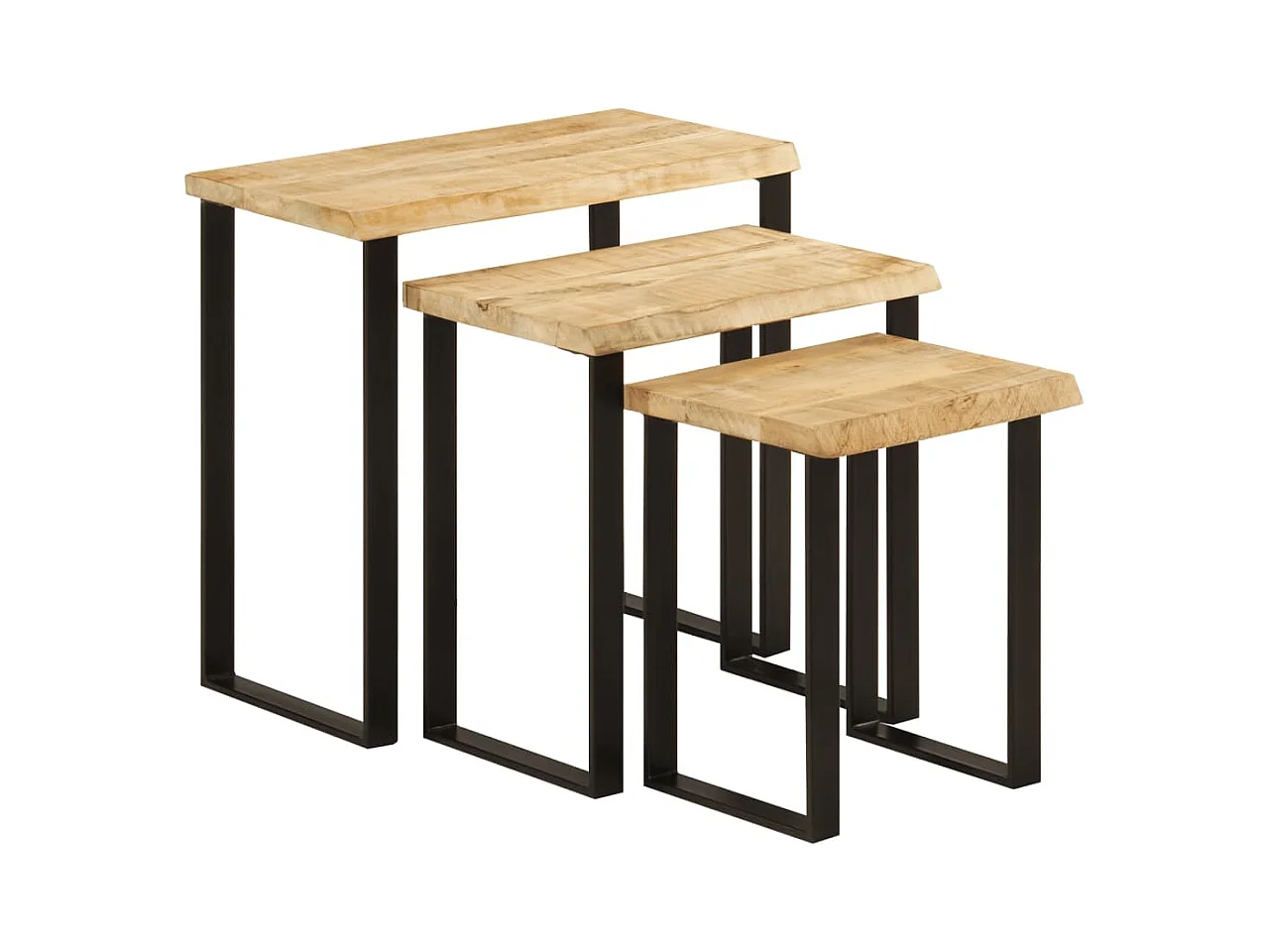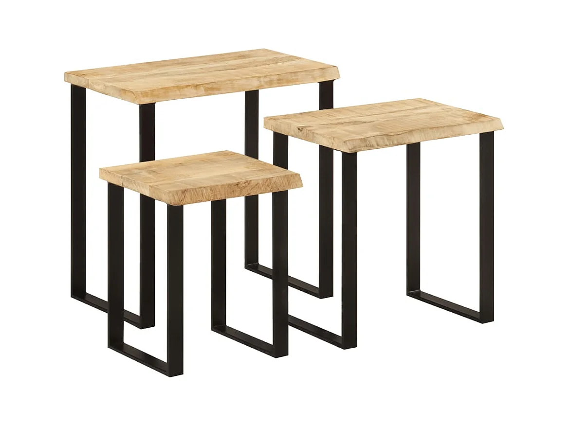 Tafeltjesset 3 st met natuurlijke rand massief mangohout BE990559