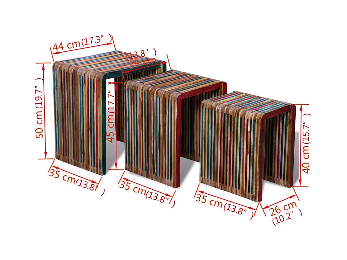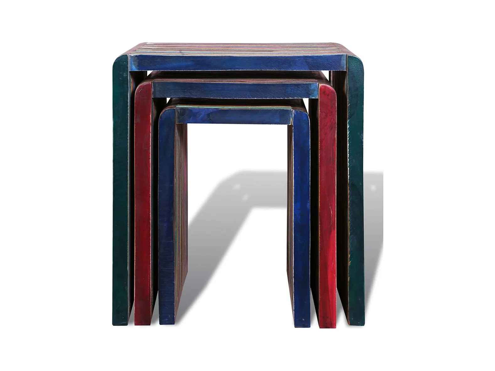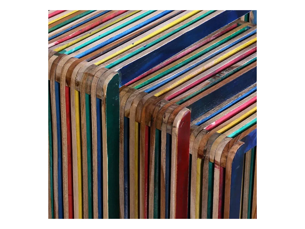 Tafeltjesset gerecycled teakhout meerkleurig 3-delig