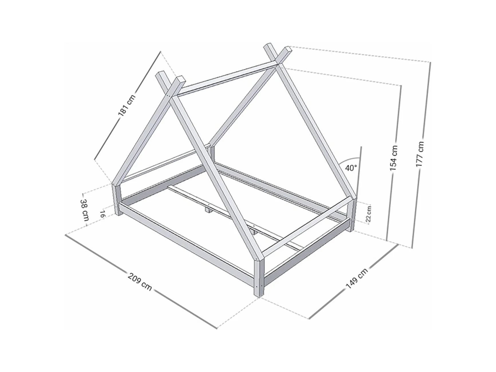TAHUKA kinder tipi bed 140 x 200 lichtblauw