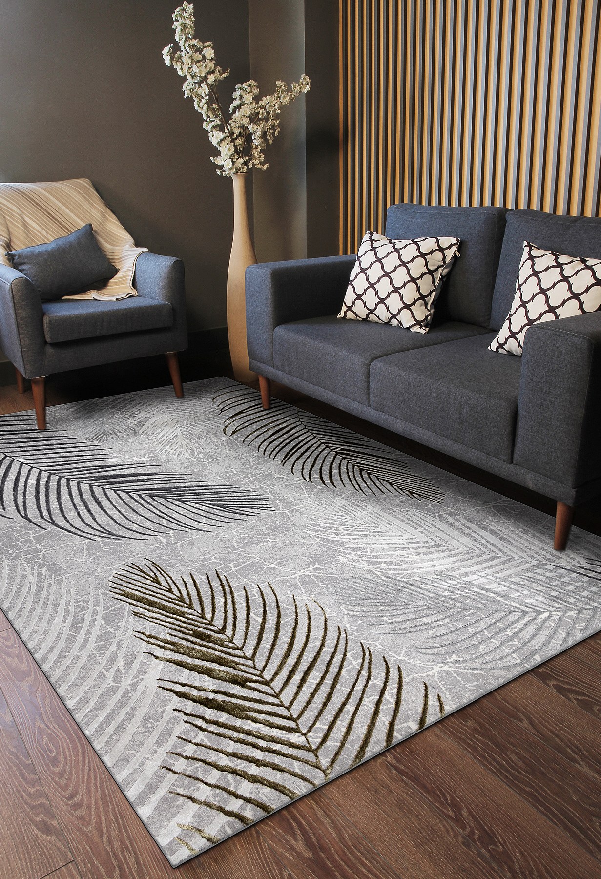 Tapijt ALLURE 8752 Bladje palm - Structureel, stijlvol, glamour grijs 280x370 cm
