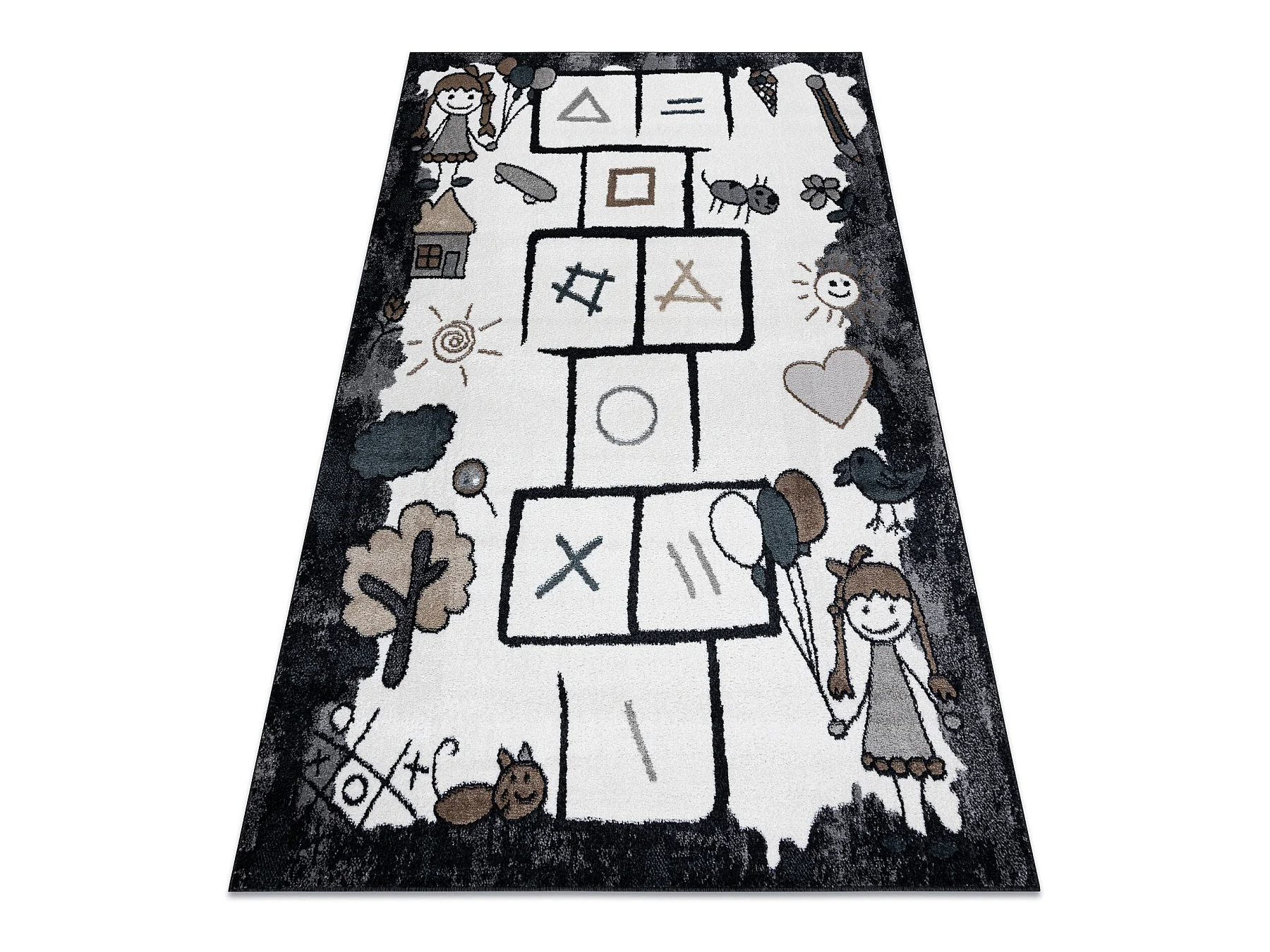 Tapijt FUN Hop voor kinderen, klassikaal spel, dieren zwart 140x190 cm
