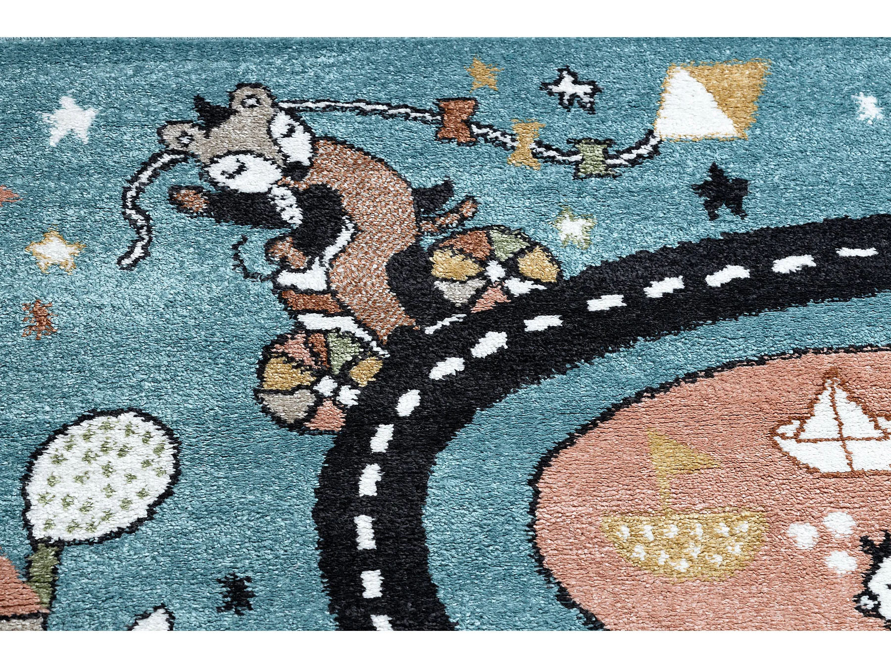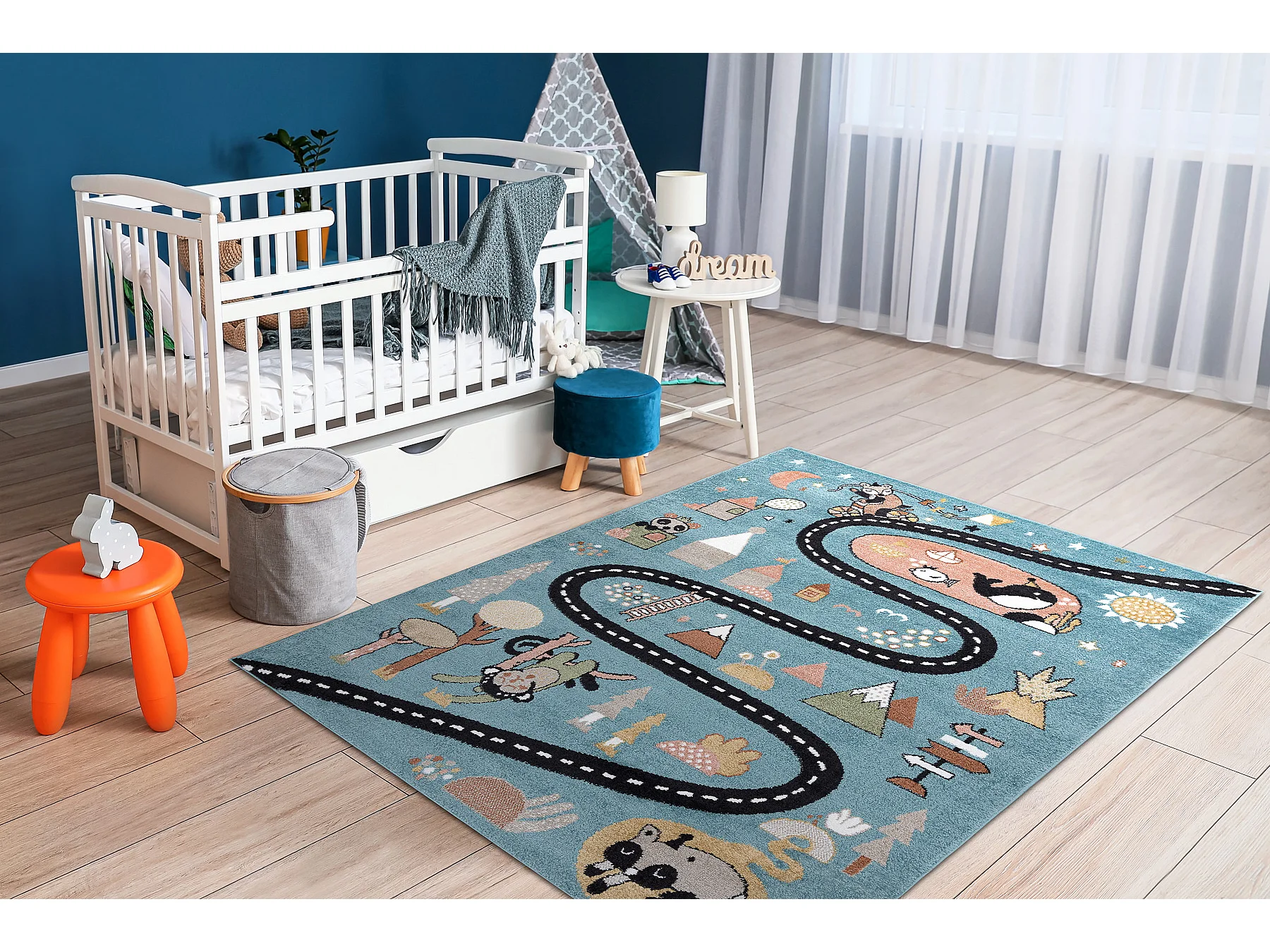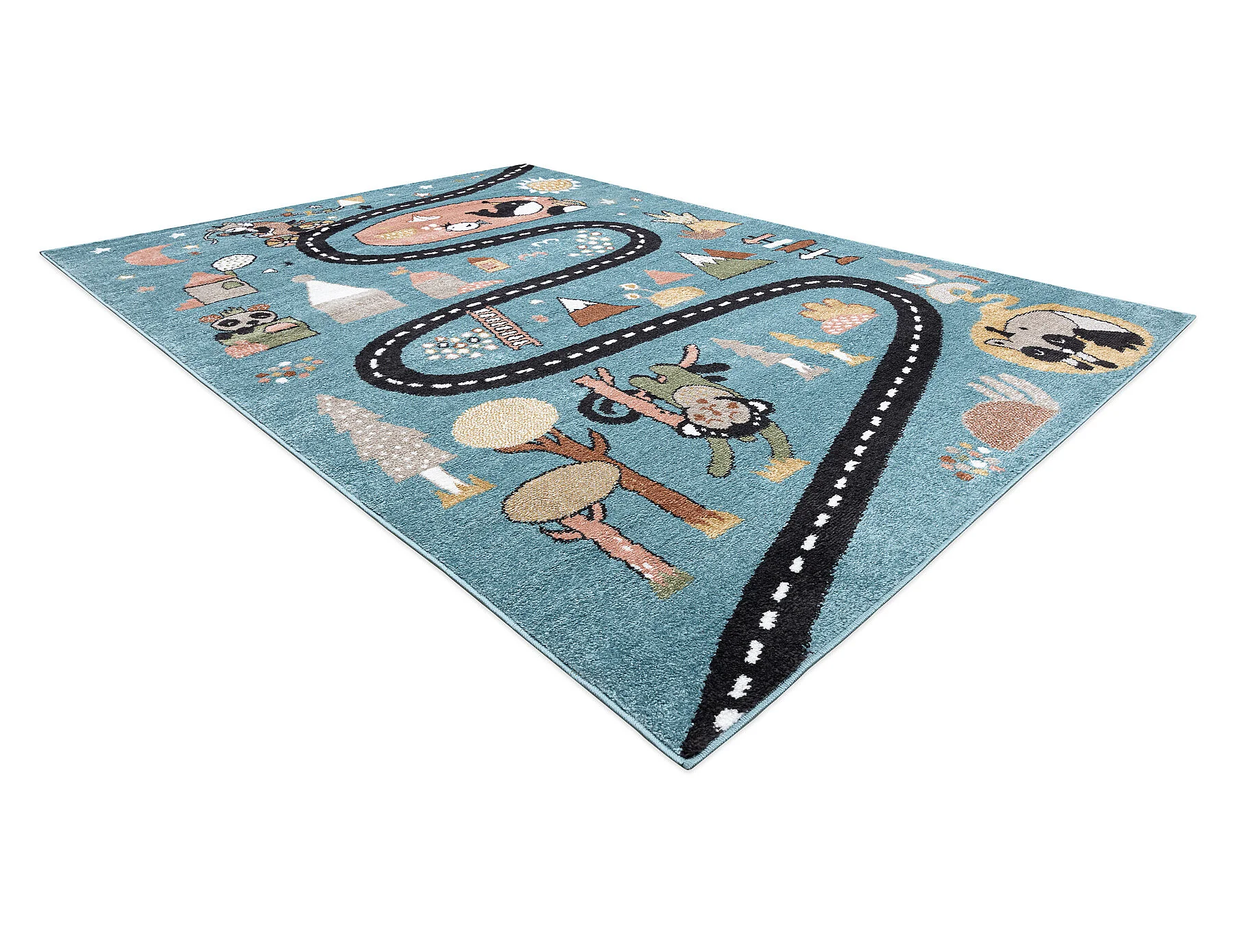 Tapijt FUN Route voor kinderen, straat, dieren blauw 120x170 cm