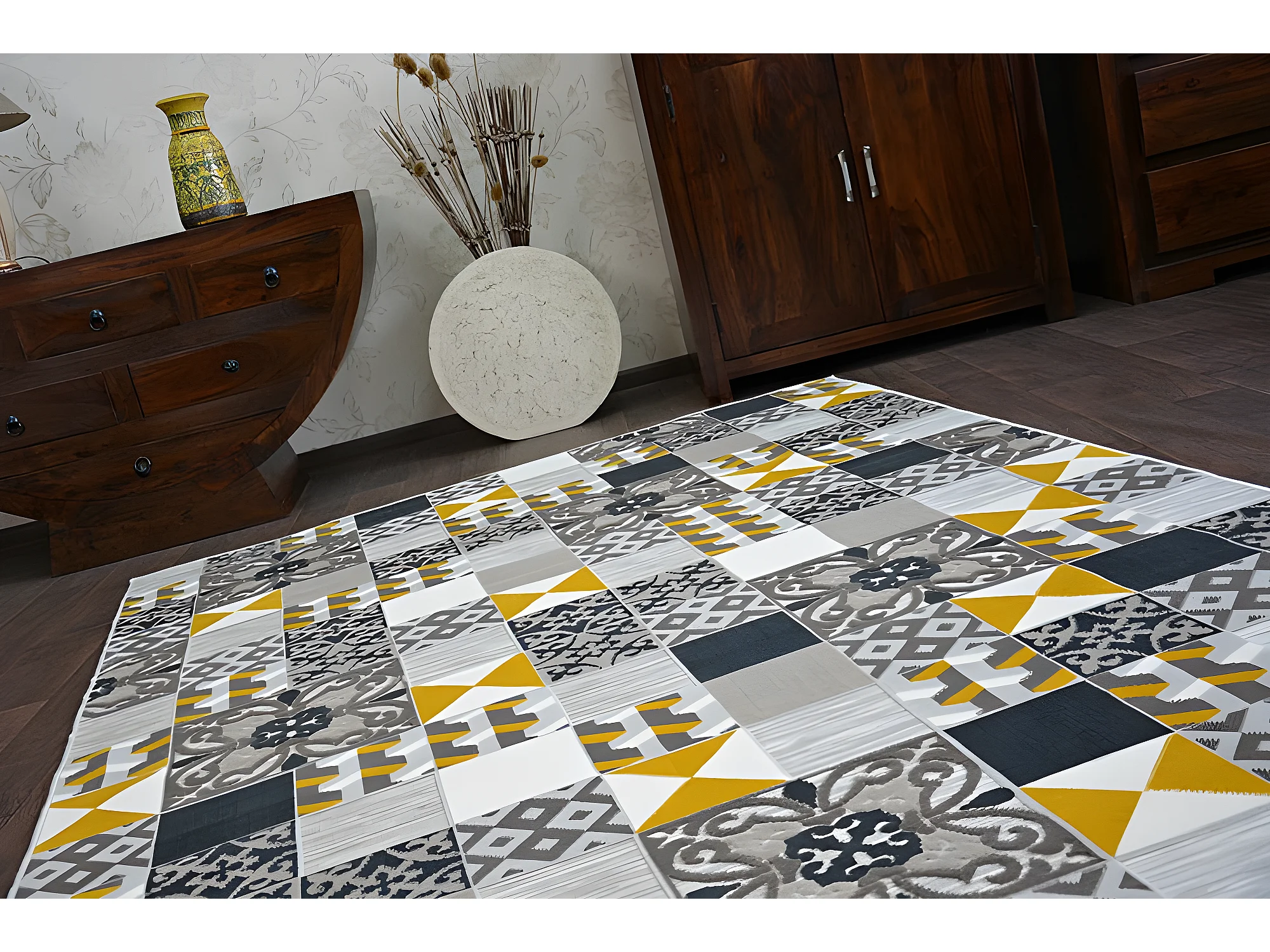 Tapijt LISBOA 27218/255 Vierhoeken , Tegels , Geel Vossabon Portugese 80x150 cm