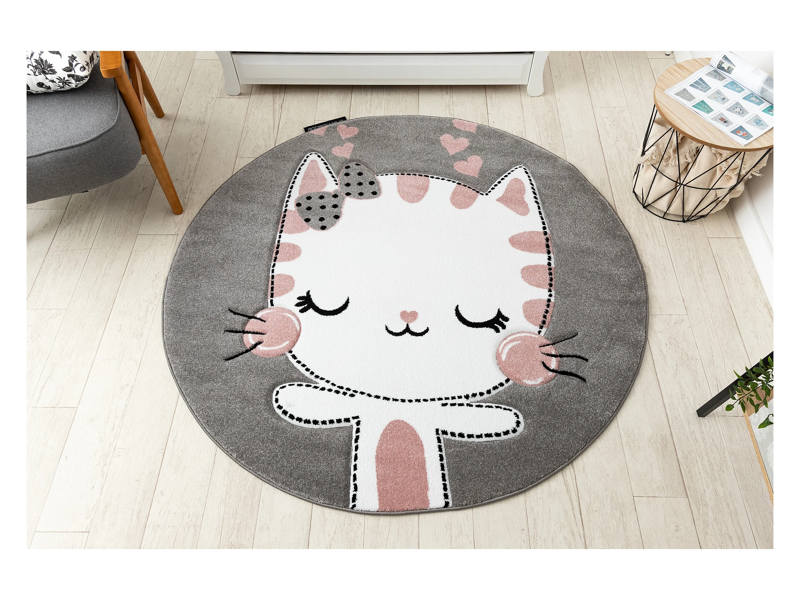 Tapijt PETIT KITTY kat poes poesje ROND grijskleuring cercle 140 cm
