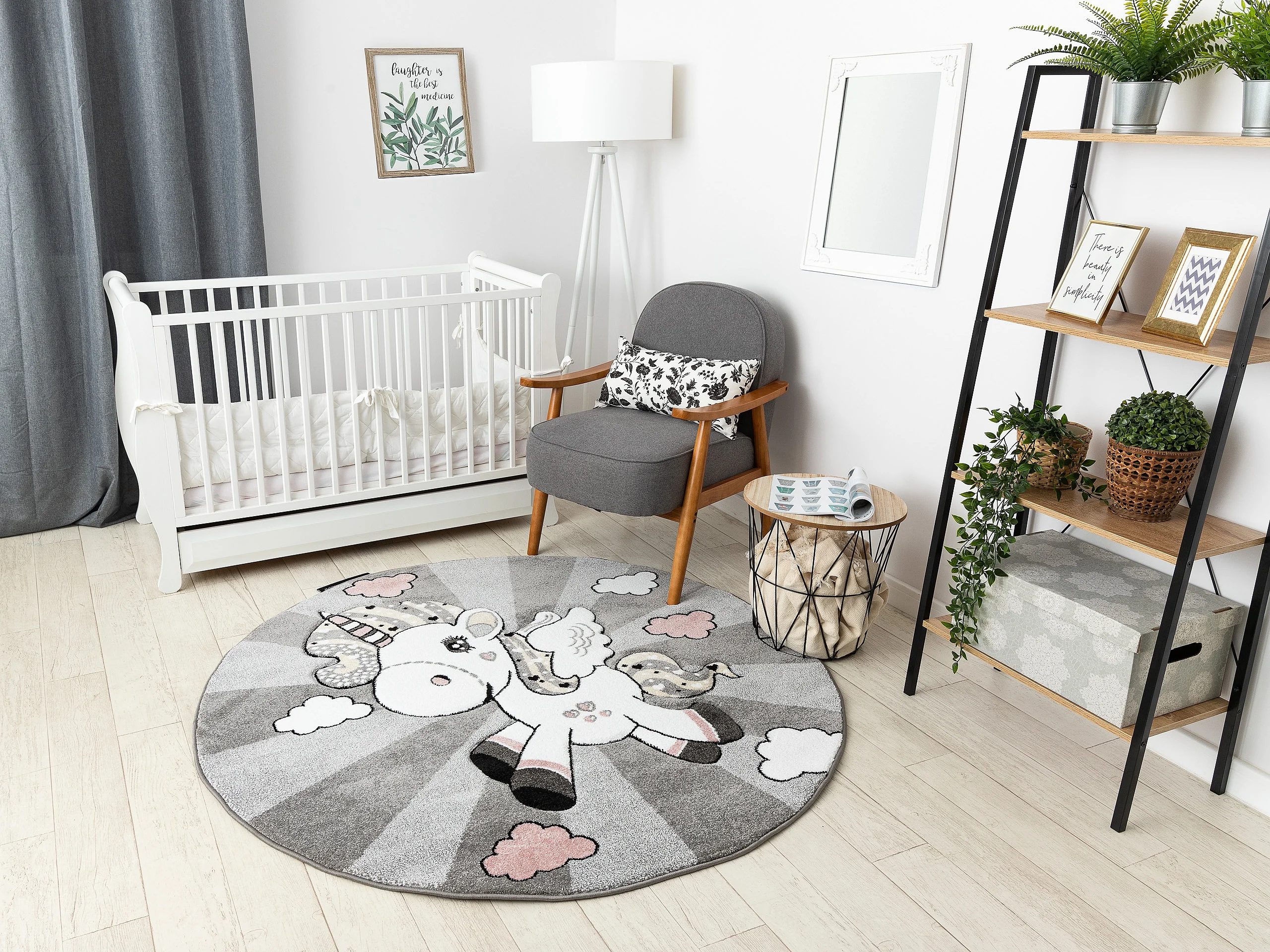 Tapijt PETIT UNICORN EENHOORN ROND grijskleuring cercle 160 cm