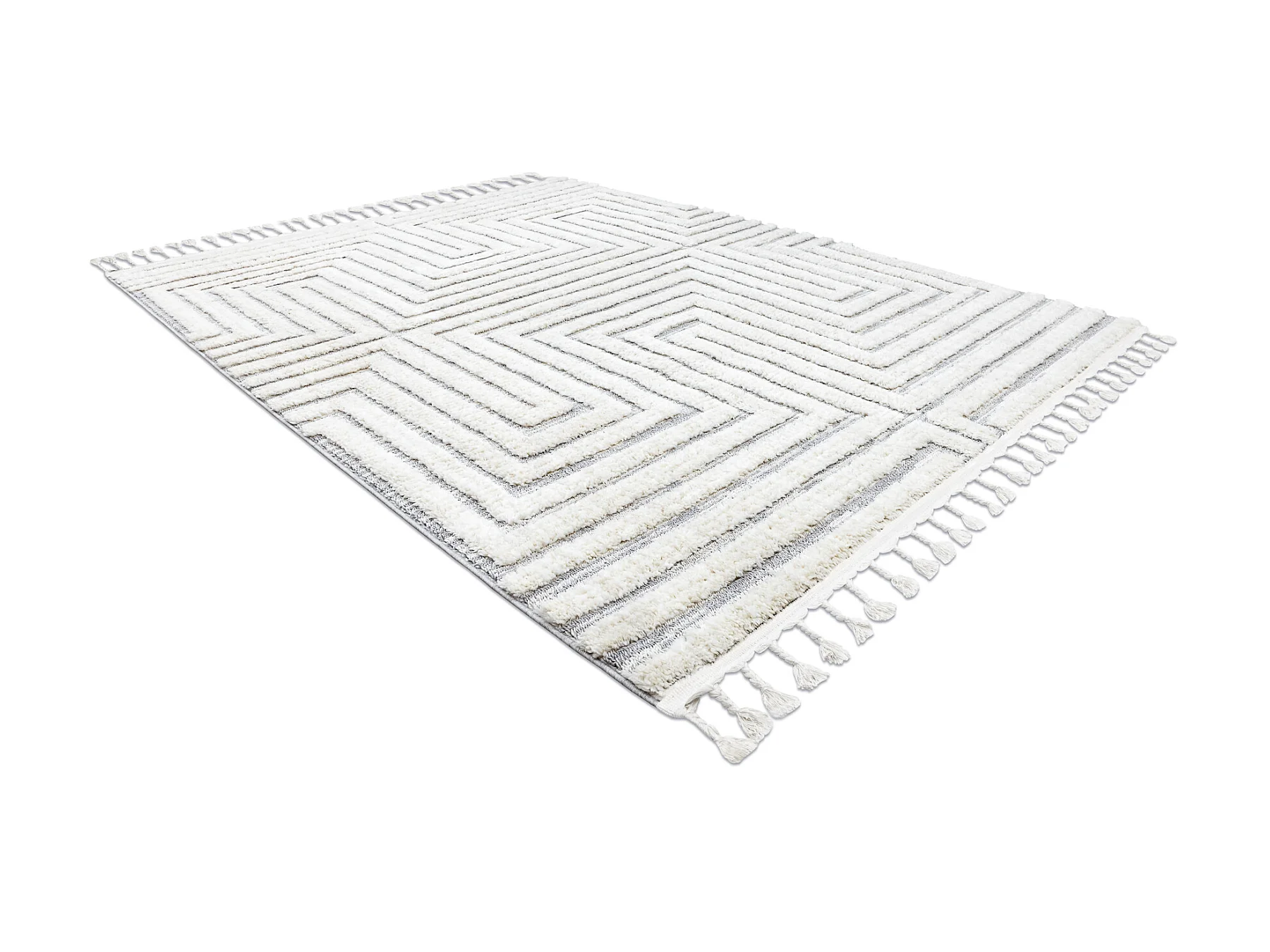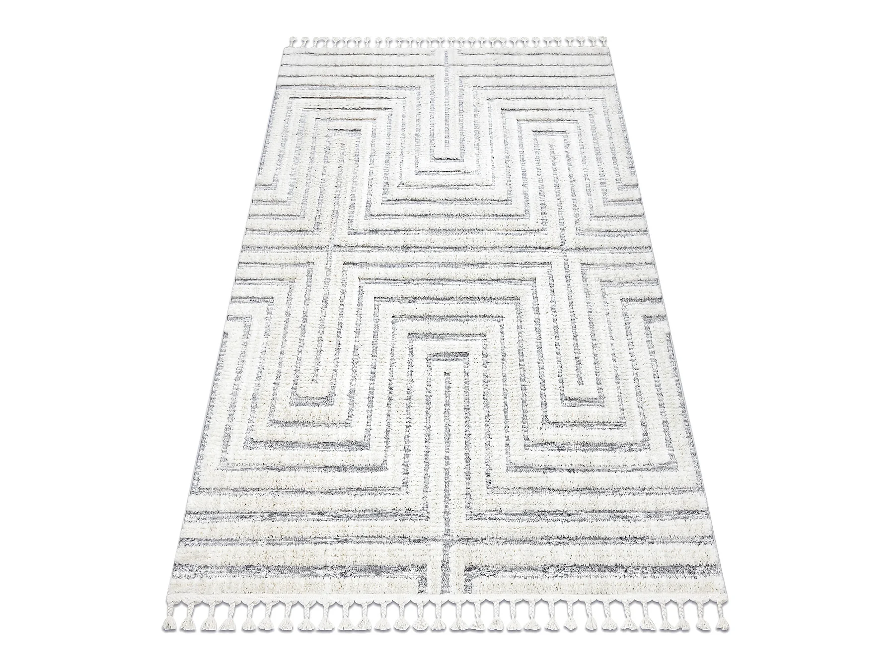 Tapijt SEVILLA Z788A Labirynt, Grieks wit / grijs Kwastjes berbery Mar 80x150 cm
