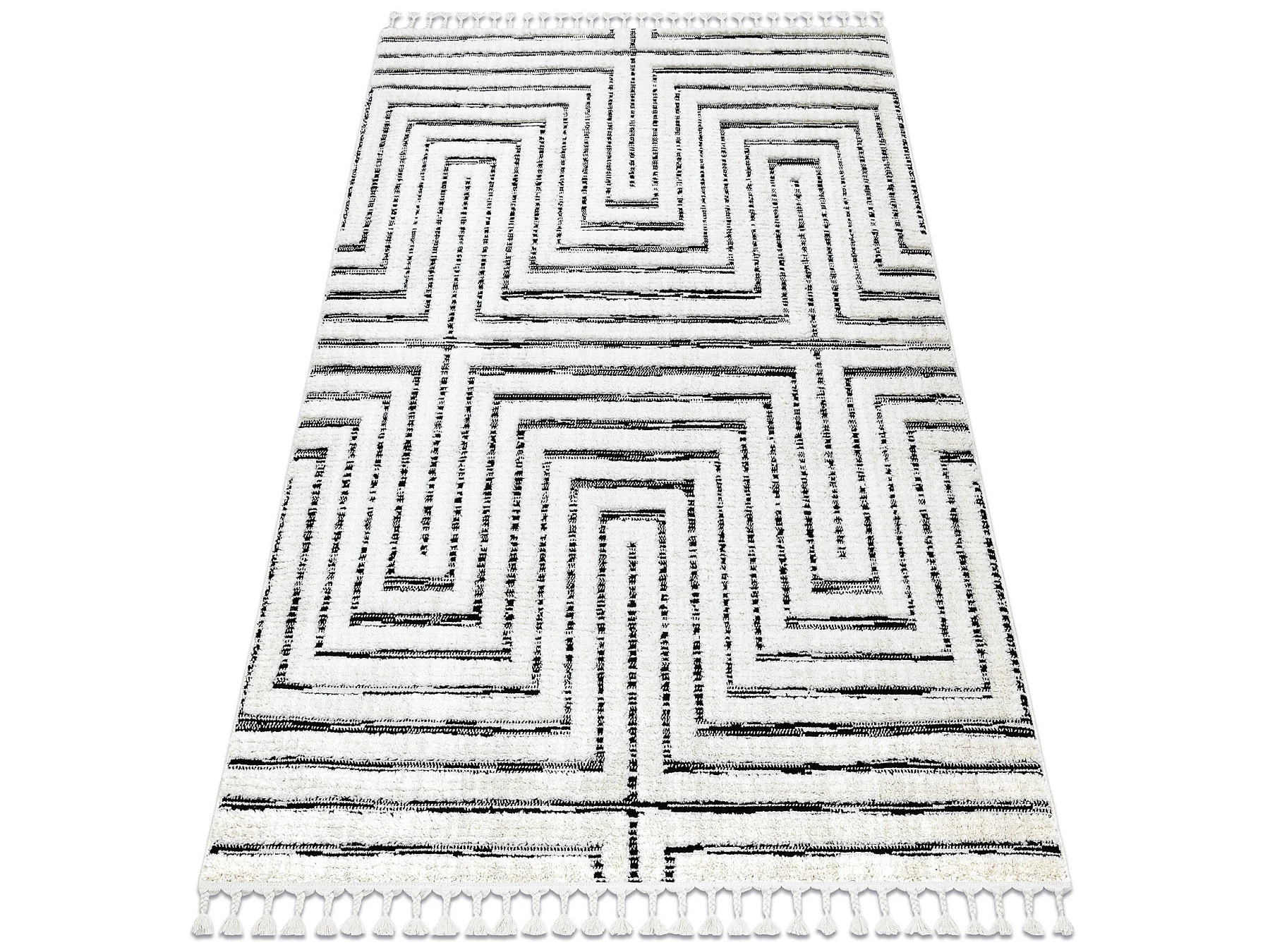 Tapijt SEVILLA Z788B Labirynt, Grieks wit / antracyt Kwastjes berbery 180x270 cm