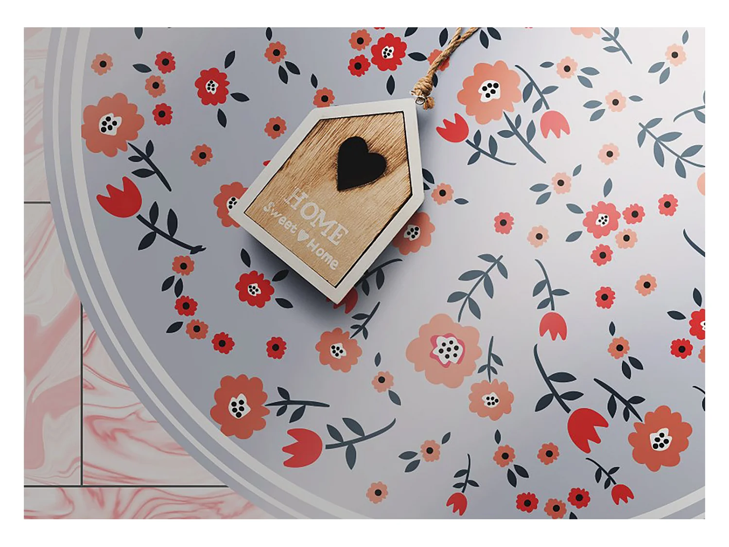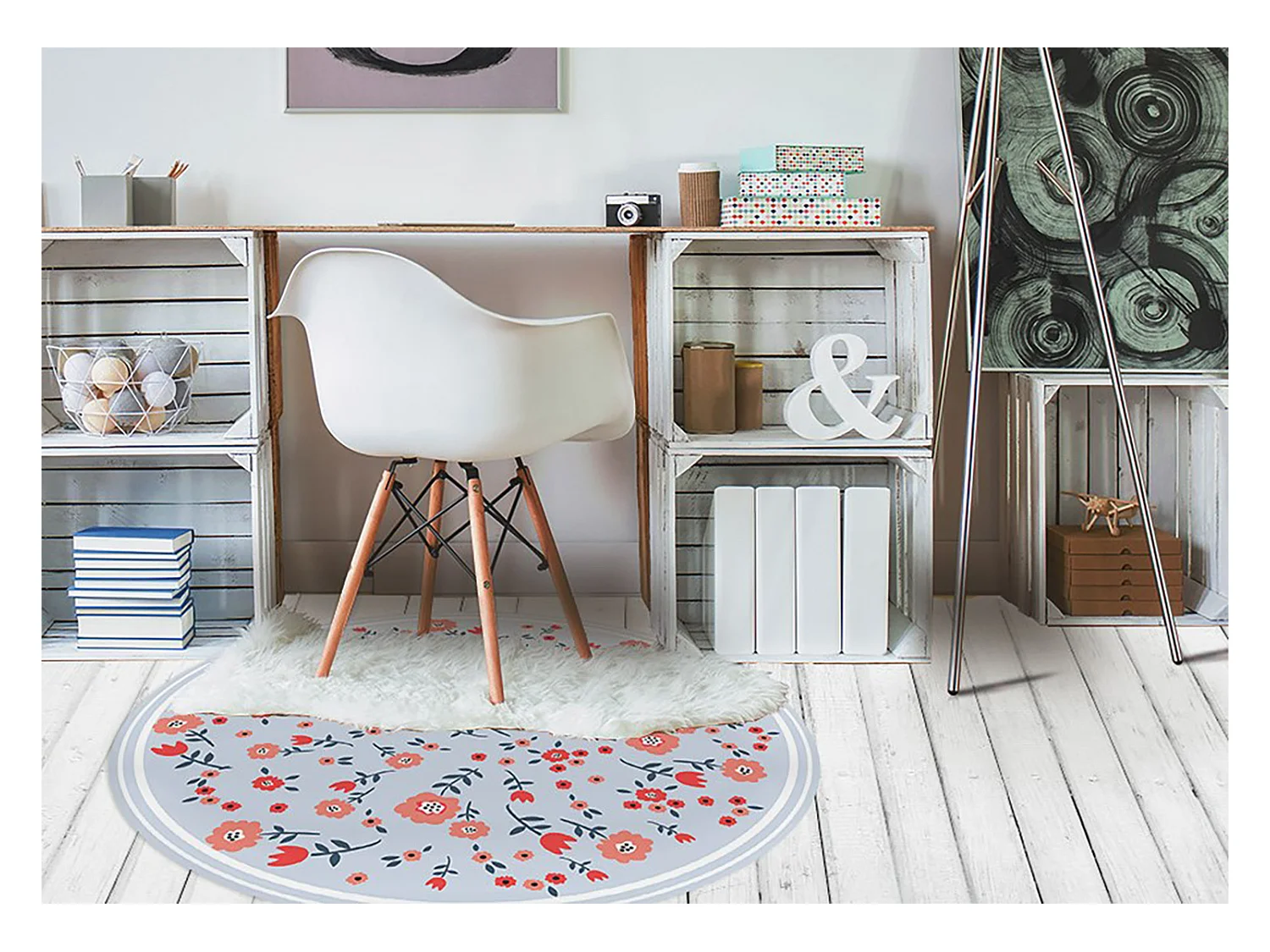 Tapijt Vinyl 50cm Decoratie voor Woonkamer Keuken Rond Waterdichte PVC - Landelijke bloemen