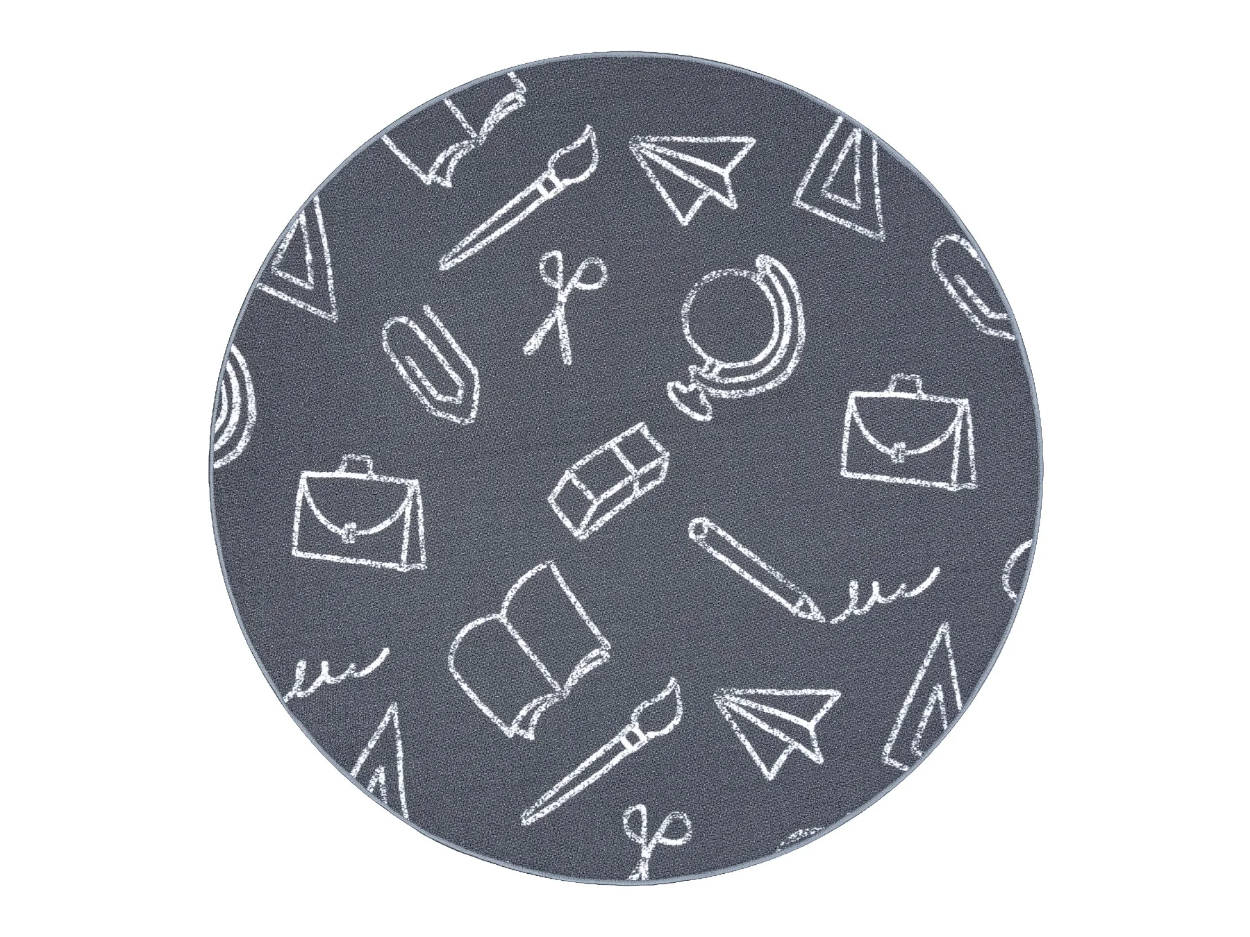 Tapijt voor kinderen SCHOOL ROND school, kinderen grijskleuring cercle 133 cm
