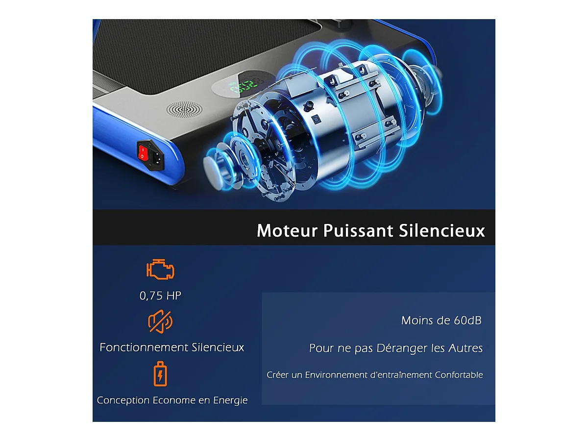 Tapis de Course Electrique Pliable 2 en 1 Contrôlé par APP 12 Km/H avec Ecran LED Haut-parleur Bluetooth Moteur 0,75HP