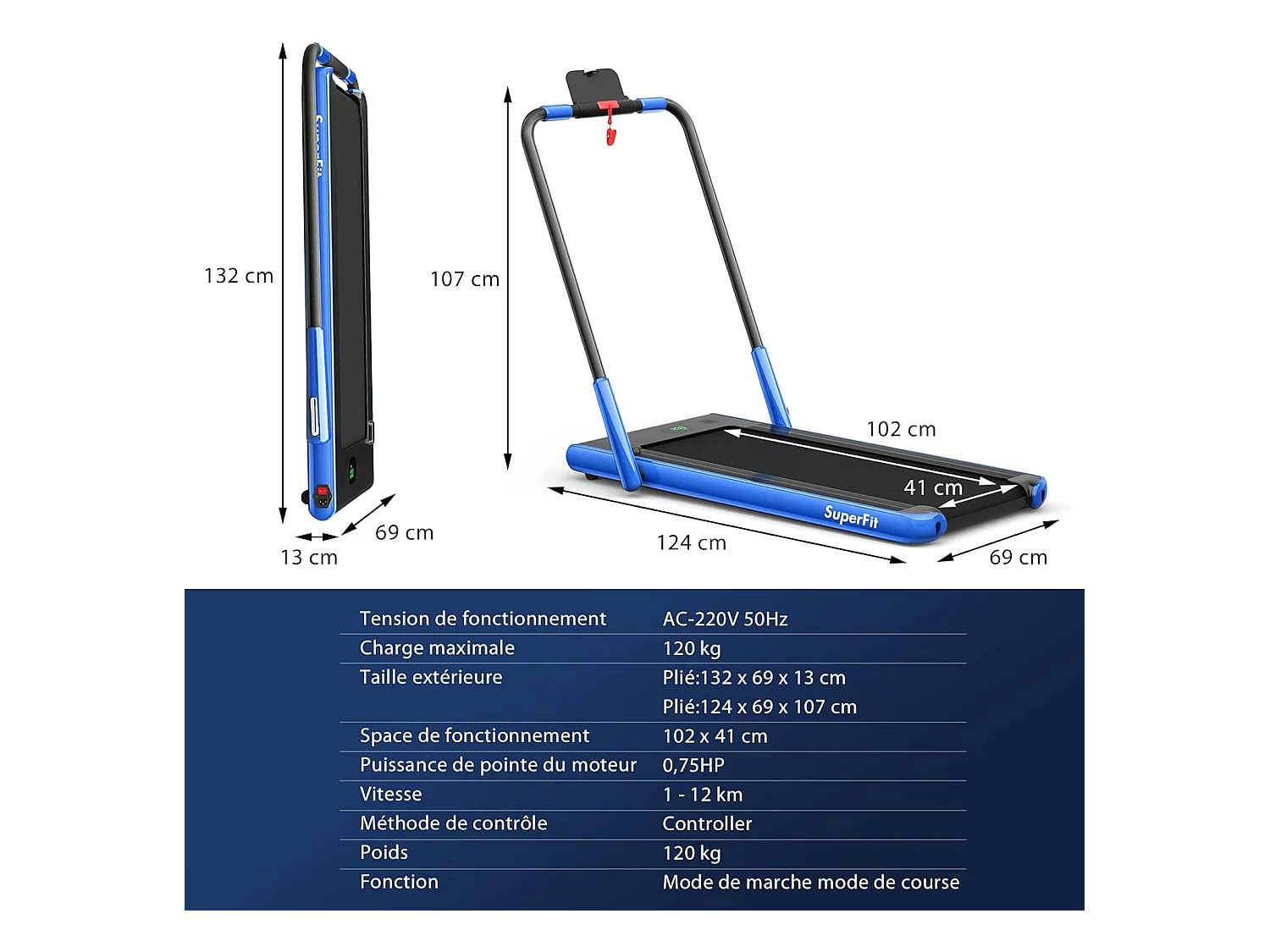Tapis de course electrique pliable 2 en 1 vitesse 1-12 km/h, tapis roulant surface 40x100cm