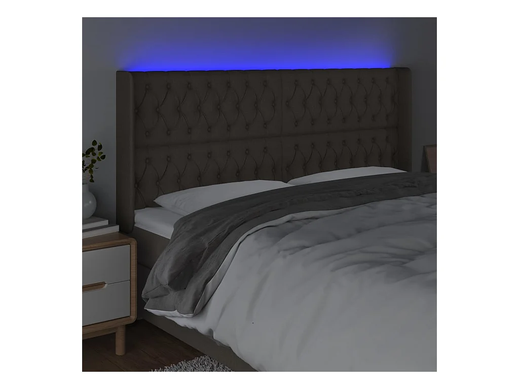 Taupe LED hoofdbord 203x16x118/128 cm Stof
