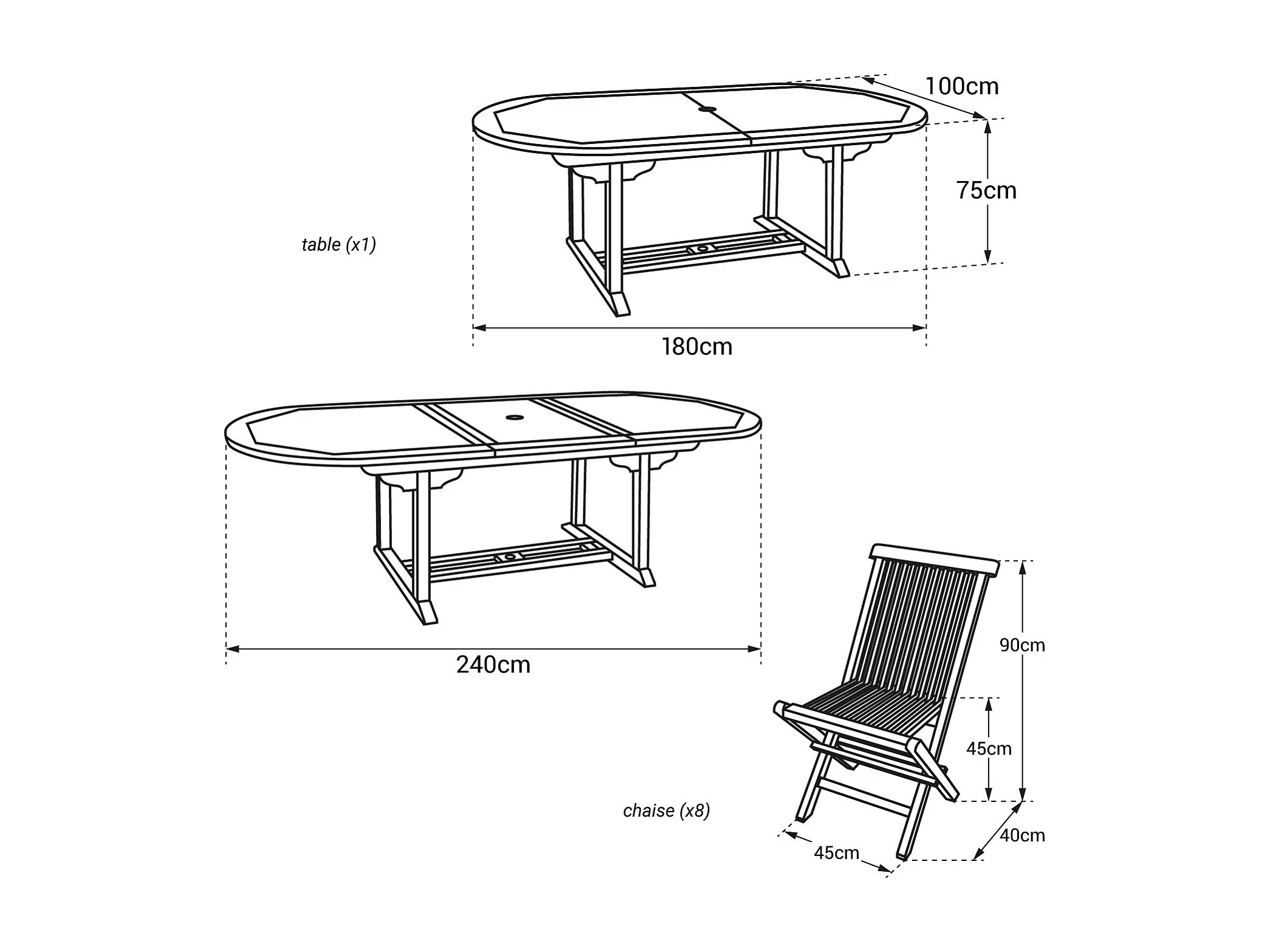 Teak tuinmeubelen LOMBOK - ovale uitschuifbare tafel - 8 zitplaatsen