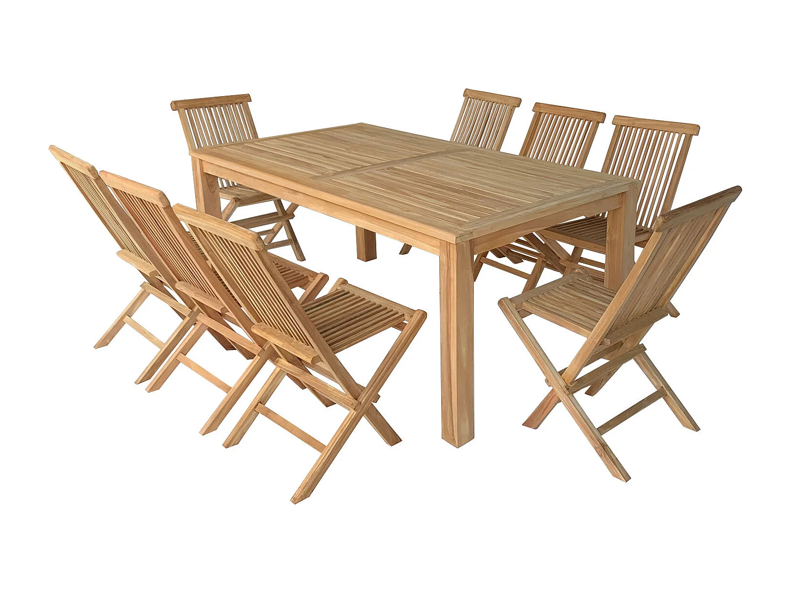 Teakhouten tuinmeubelen JAVA - rechthoekige tafel en klapstoelen - 8 zitplaatsen