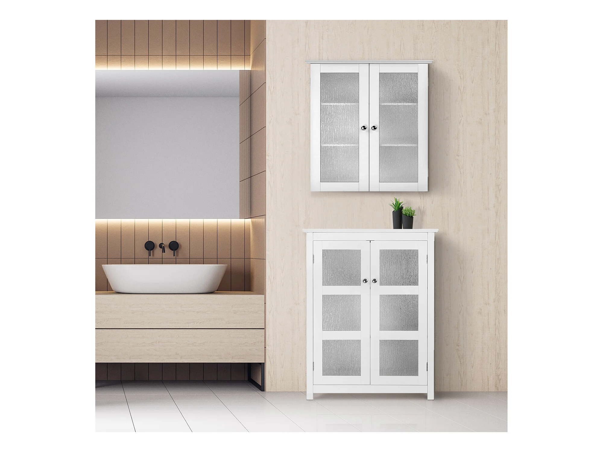 Teamson Home Badkamerkast - Connor Houten Muurbevestiging Kastje Met 2 Glas Deuren en Planken - Wit