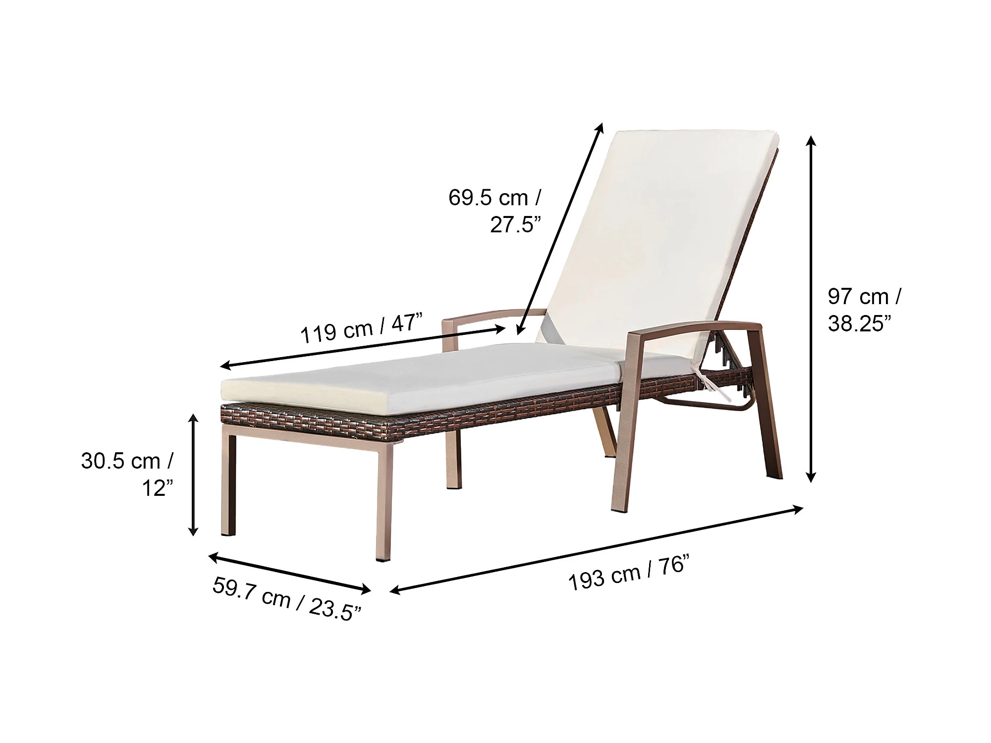 Teamson Home Ligstoel Tuin - Set van 2 - Tuinmeubelen - Met Kussens - Hoogte Verstelbaar en Opvouwbaar - Rotan - Bruin/Creme
