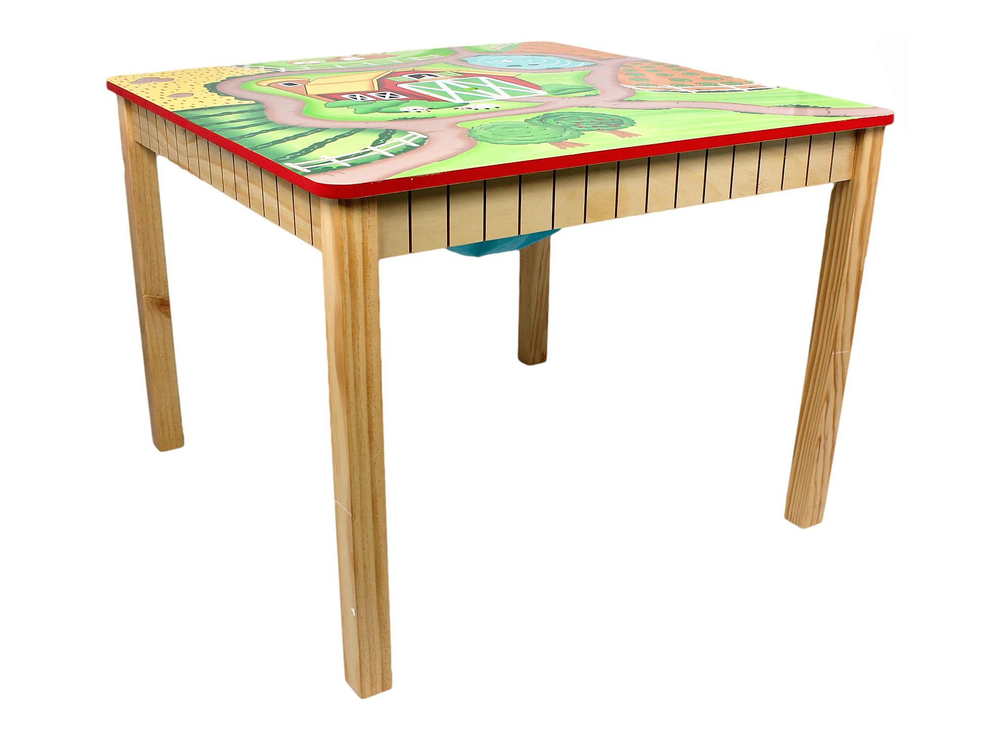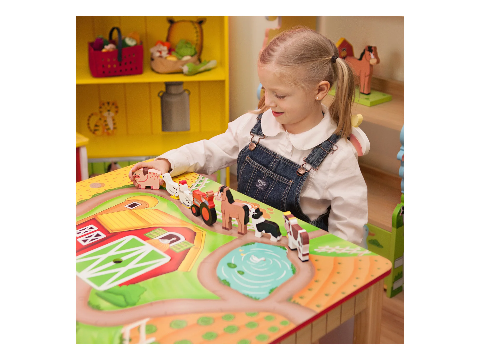 Teamson Kids Houten Tafel Voor Kinder - Kinderslaapkamer Accessoires - Blije Boerderij Ontwerp - Omvat Beeldjes