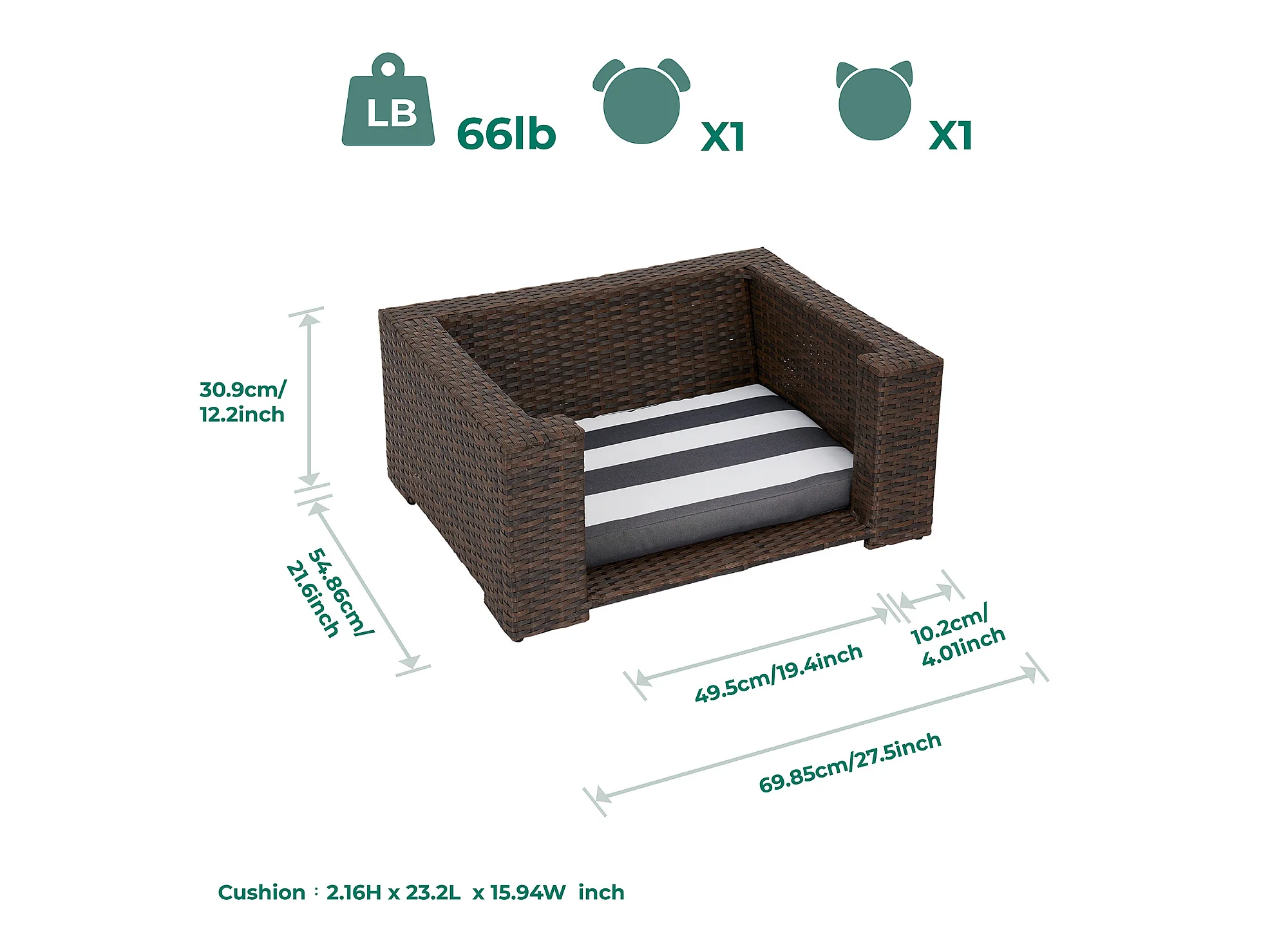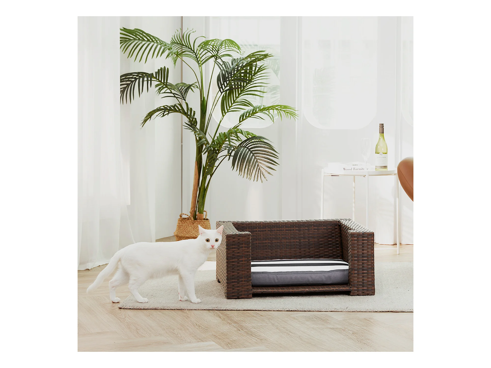 Teamson Pets Bed/Mand Voor Katten of Kleine Honden - Geweven Ontwerp - Verwijderbaar Wasbaar Kussen - Bruin