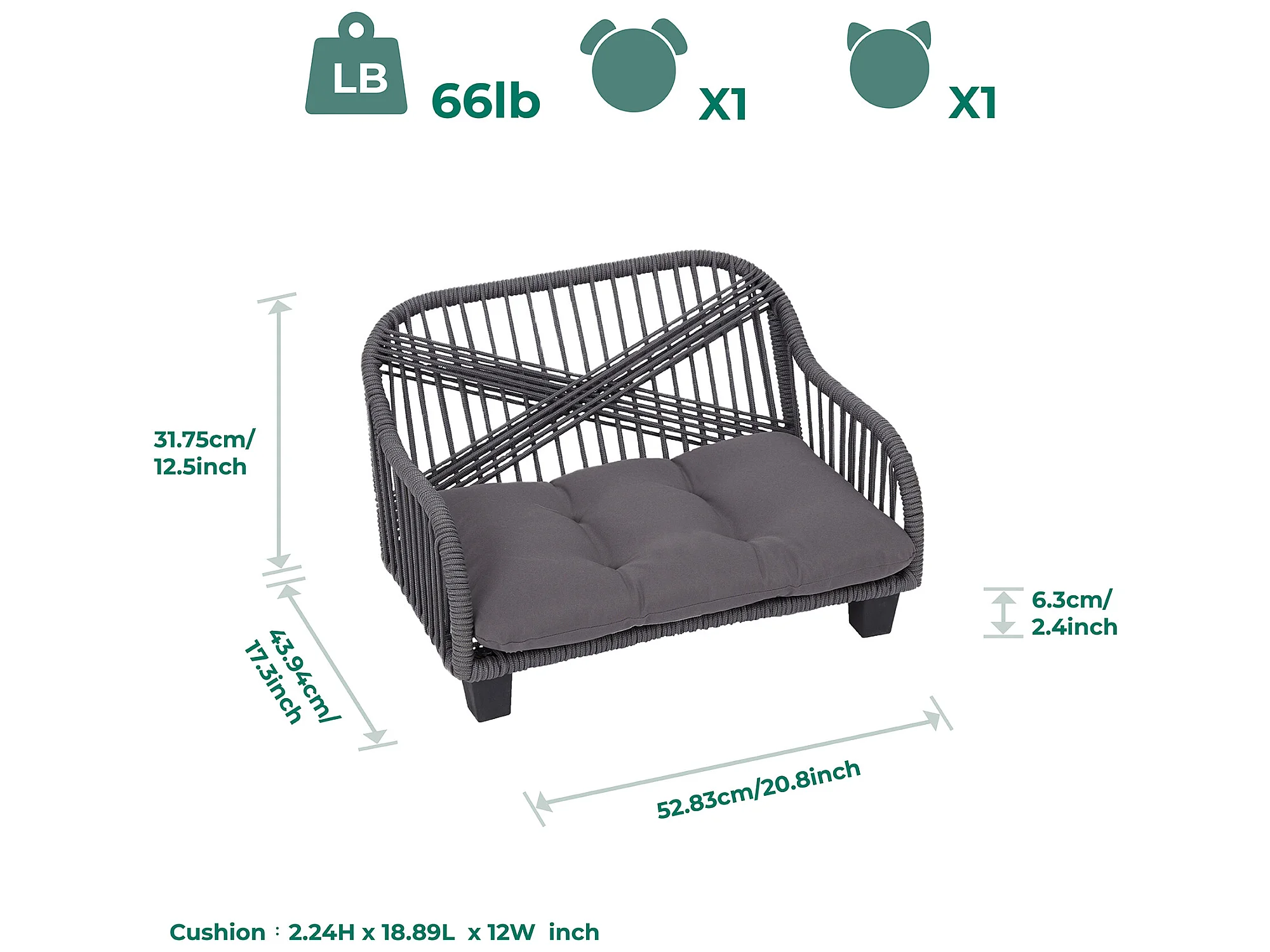 Teamson Pets Bed/Mand Voor Katten of Kleine Honden - Geweven Ontwerp - Verwijderbaar Wasbaar Kussen - Grij