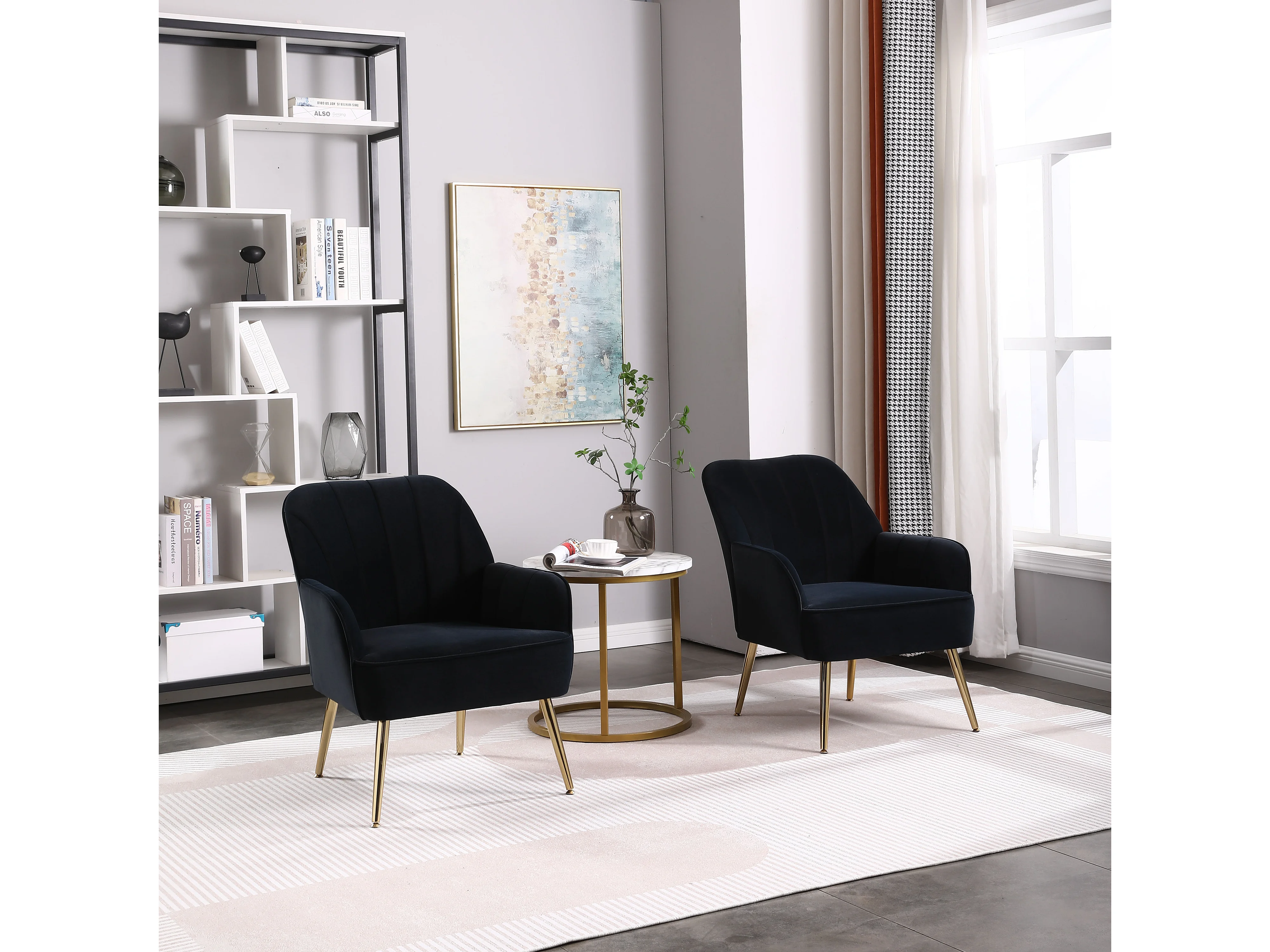 Teddy stoffen draaifauteuil, zwarte metalen voet, set van 2, grijs (64x73x78 cm)