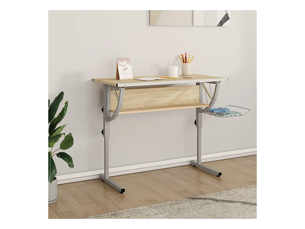 Tekentafel 110x53x(58-87) cm bewerkt hout en staal eiken/grijs BE472723
