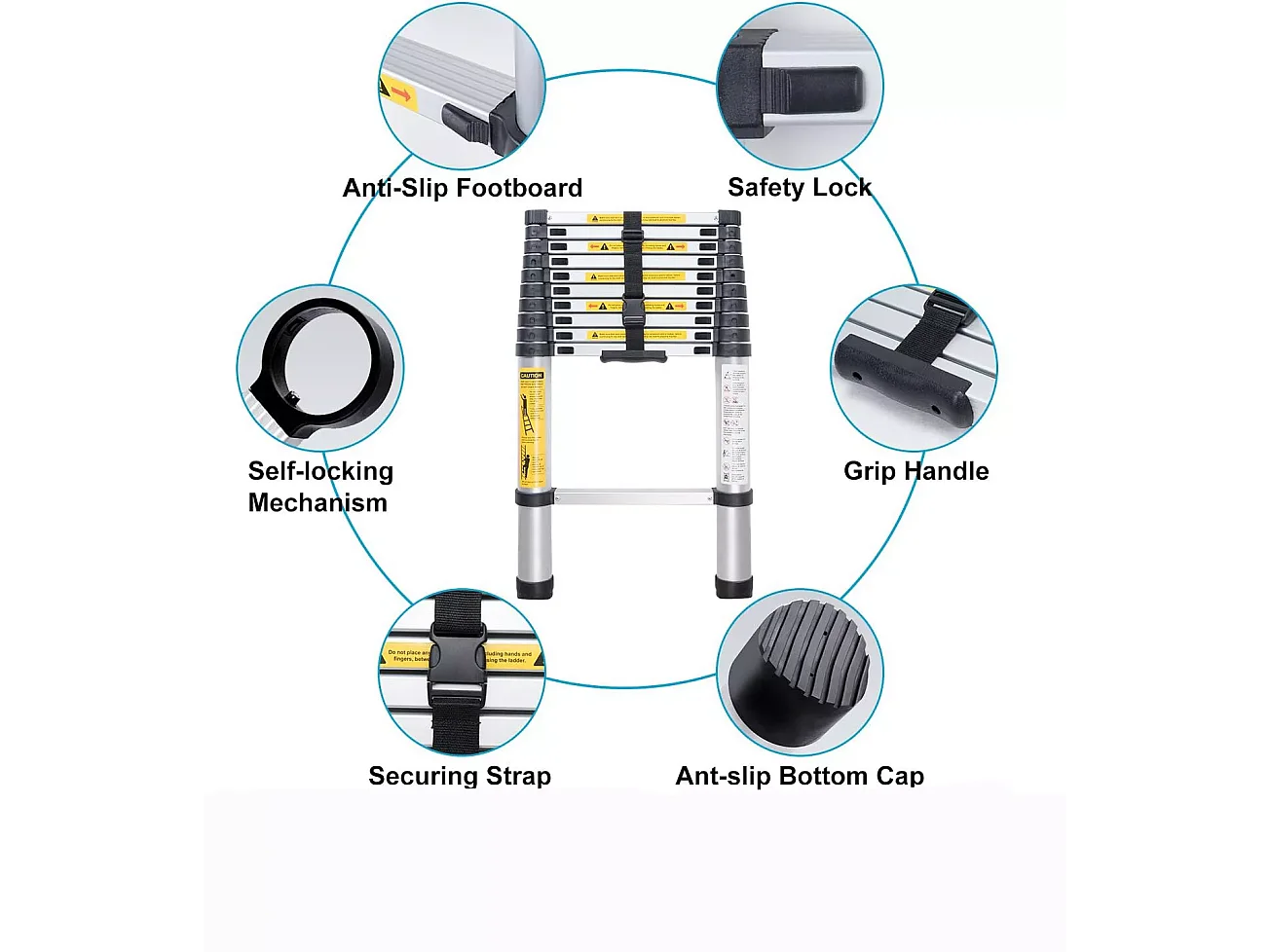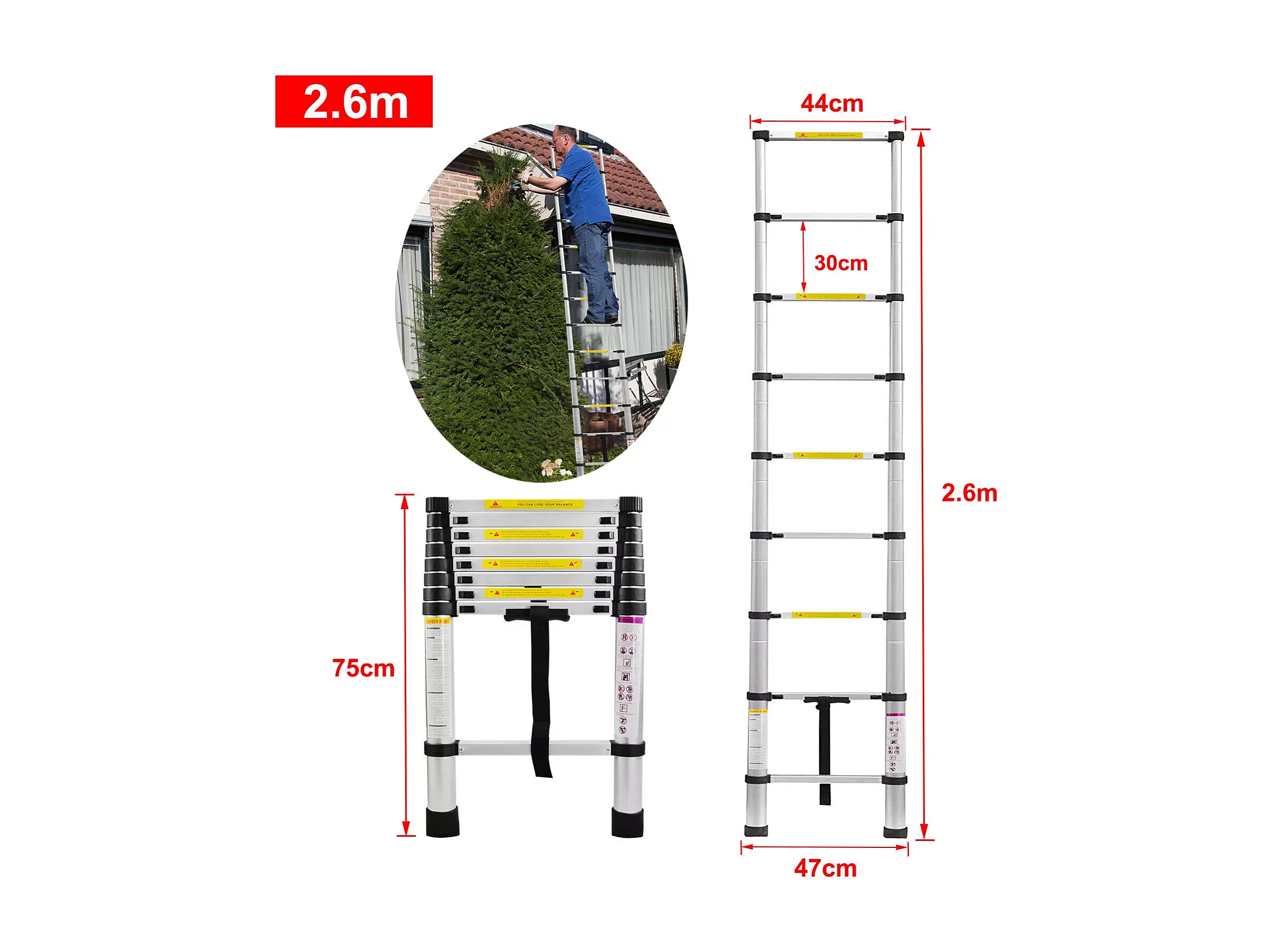 Telescopische aluminium ladder van 2,6 m - Opvouwbare opstapkruk - 9 sporten - met antislipvoeten - Maximale belasting 150 kg