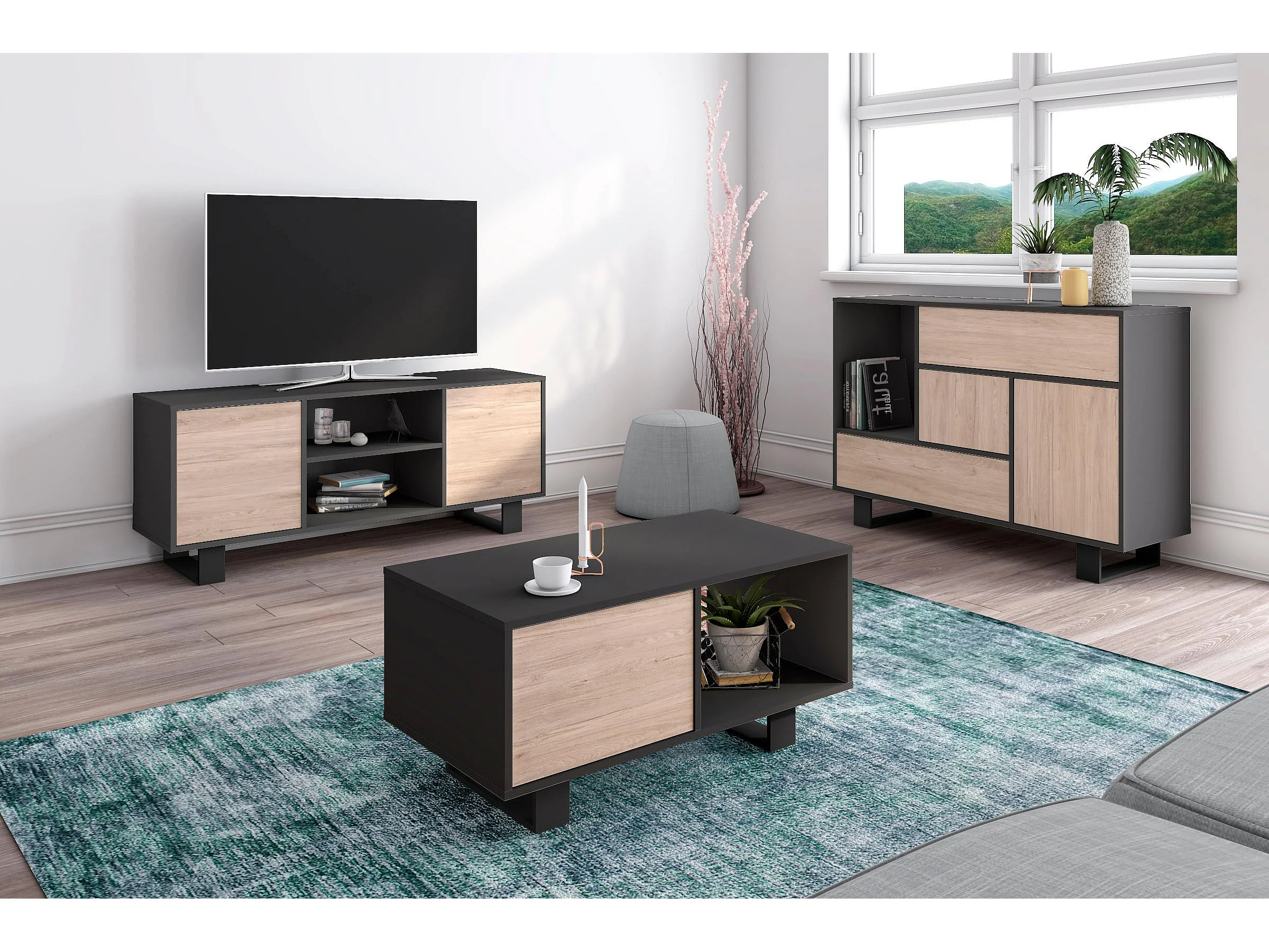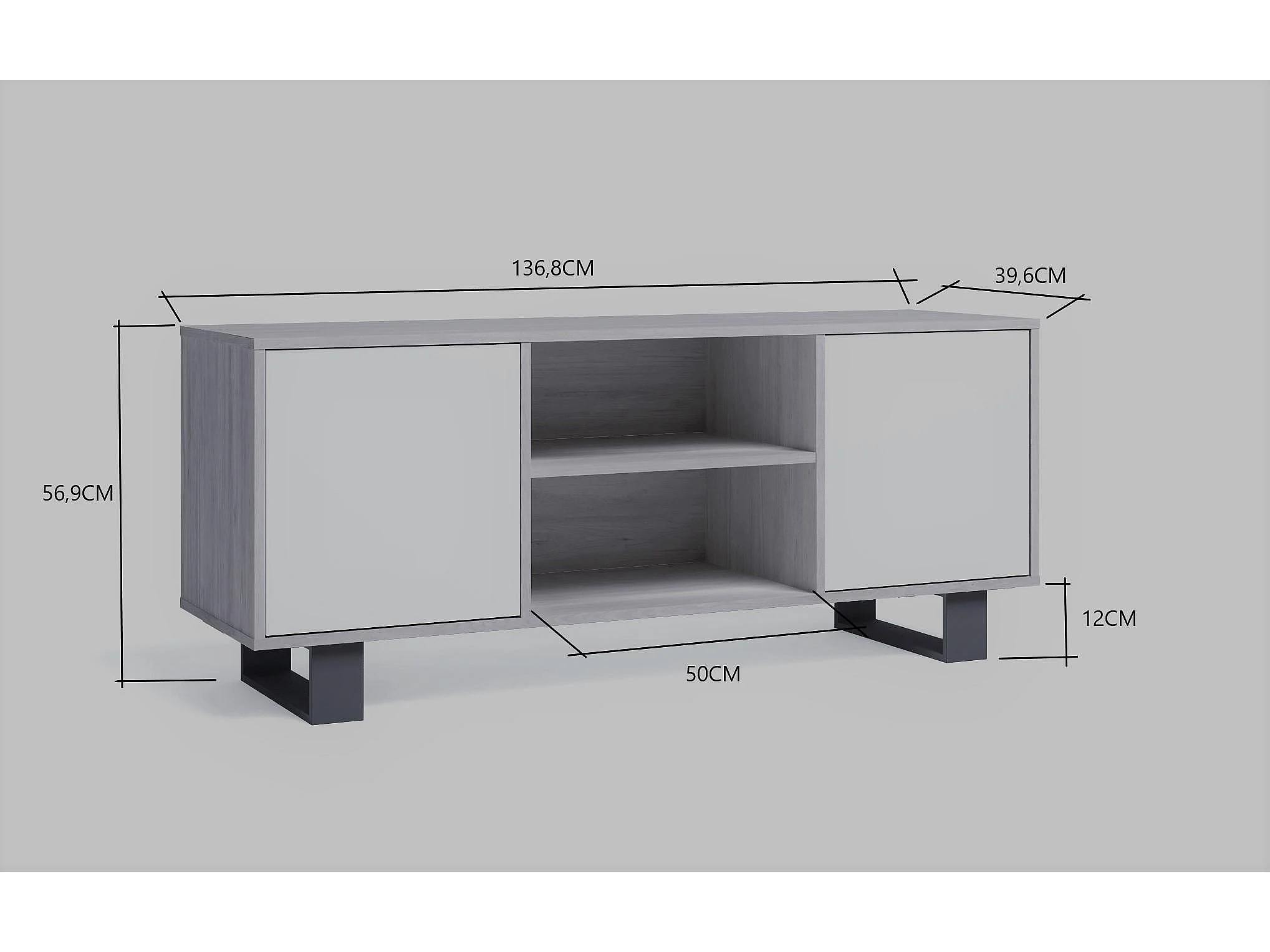 Televisiemeubels, Windmodel, 137x40x57cm, Eetkamer, Grijs en eiken, Moderne stijl