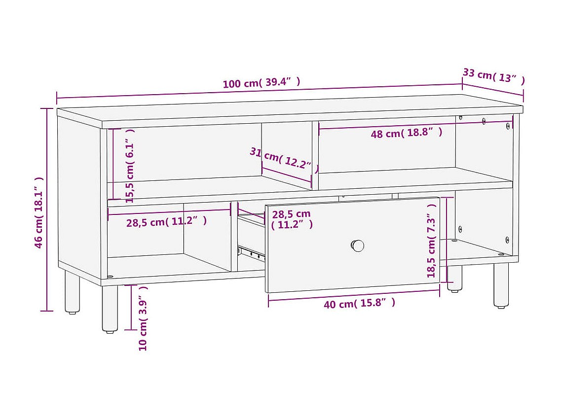 Telira Tv-meubel 100x33x46 cm massief mangohout zwart