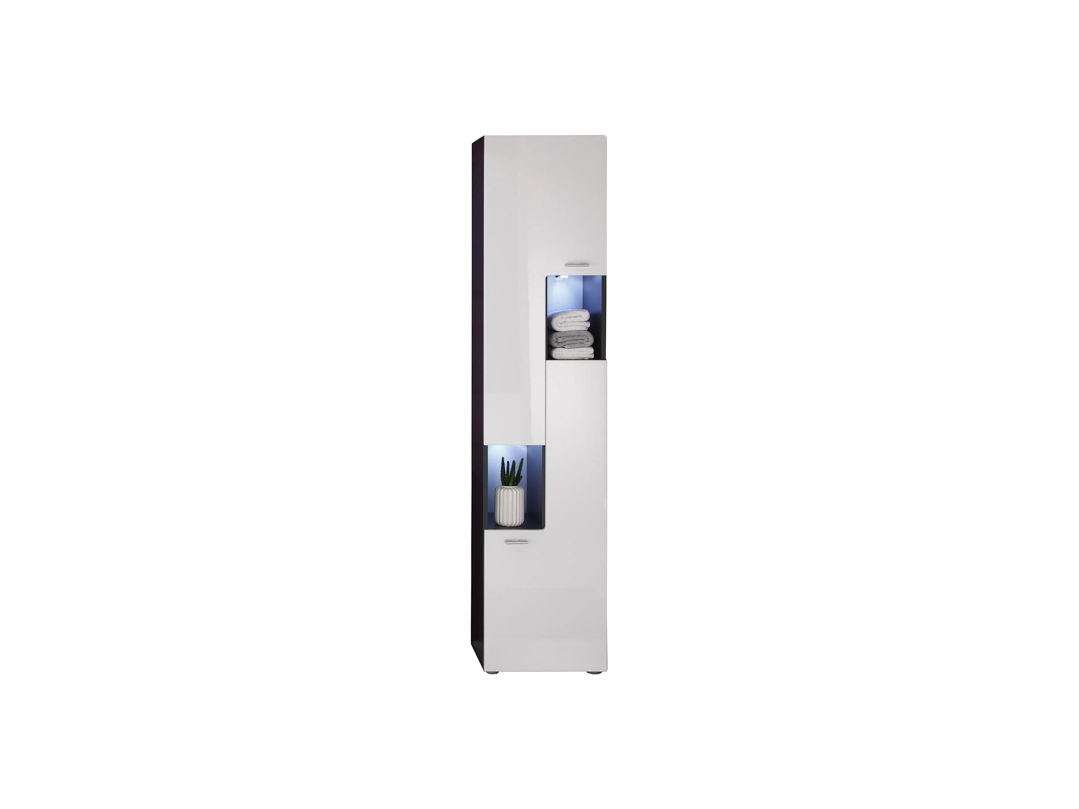 TetisBad kolomkast hoog 2 deuren, 2 open vakken grafiet decor, wit hoogglans.