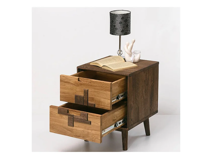 Thayla nachtkastje van natuurlijk en bruin massief eikenhout 40 cm