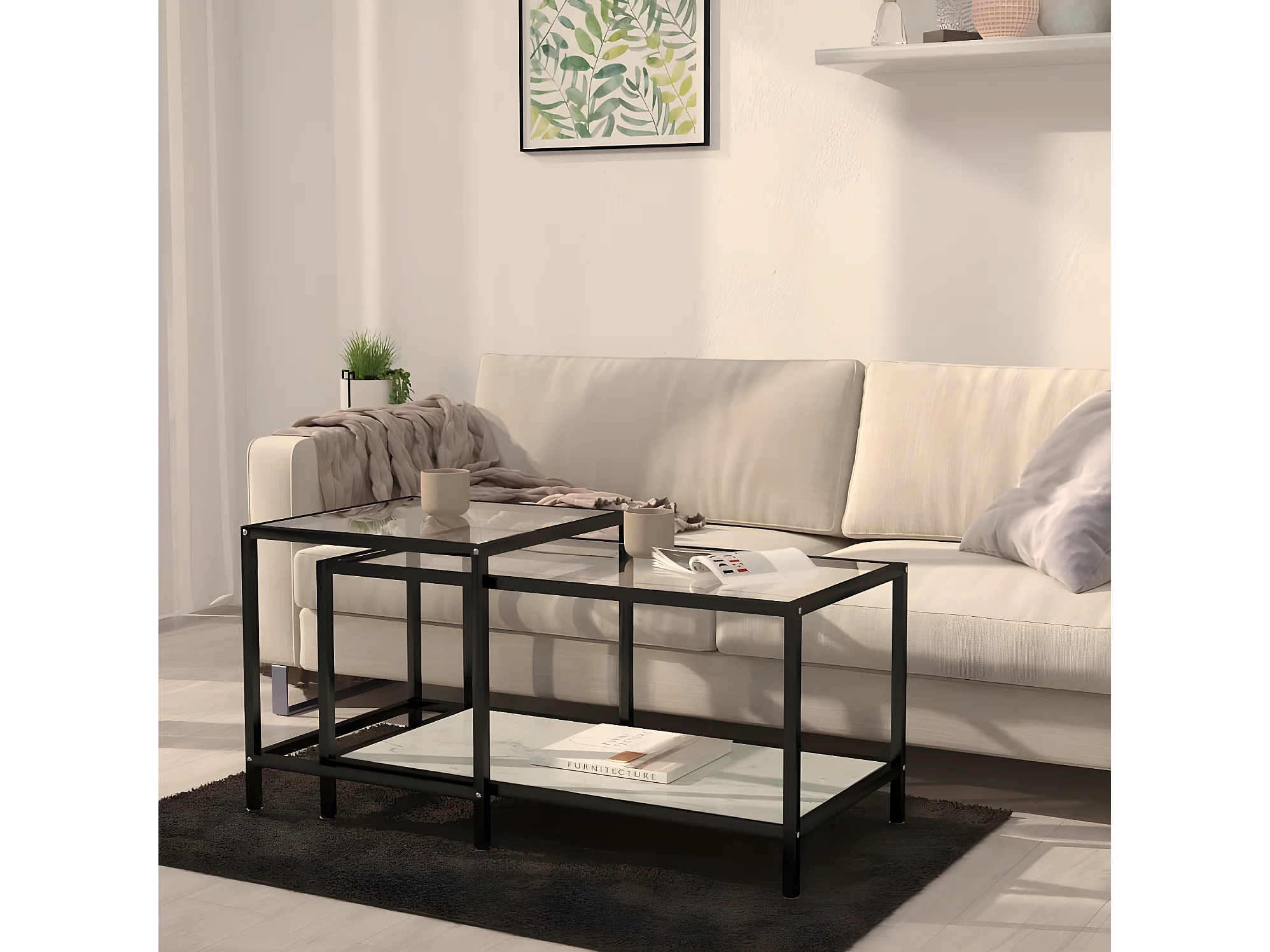 Theetafels 2 stuks Gehard glas Wit