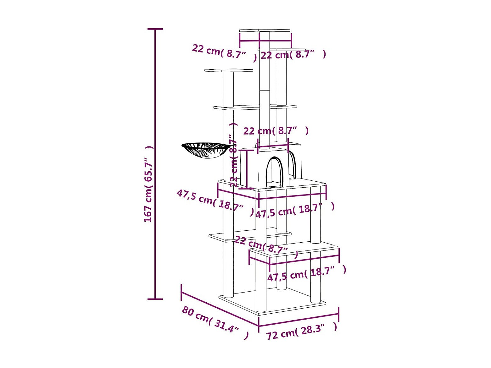 Tjarl Kattenmeubel met sisal krabpalen 167 cm donkergrijs