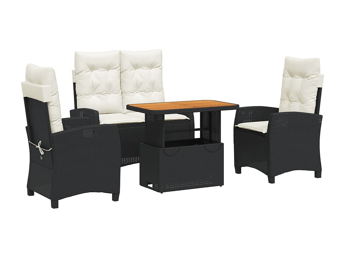 Sandviken 4-delige Tuinset met kussens poly rattan zwart