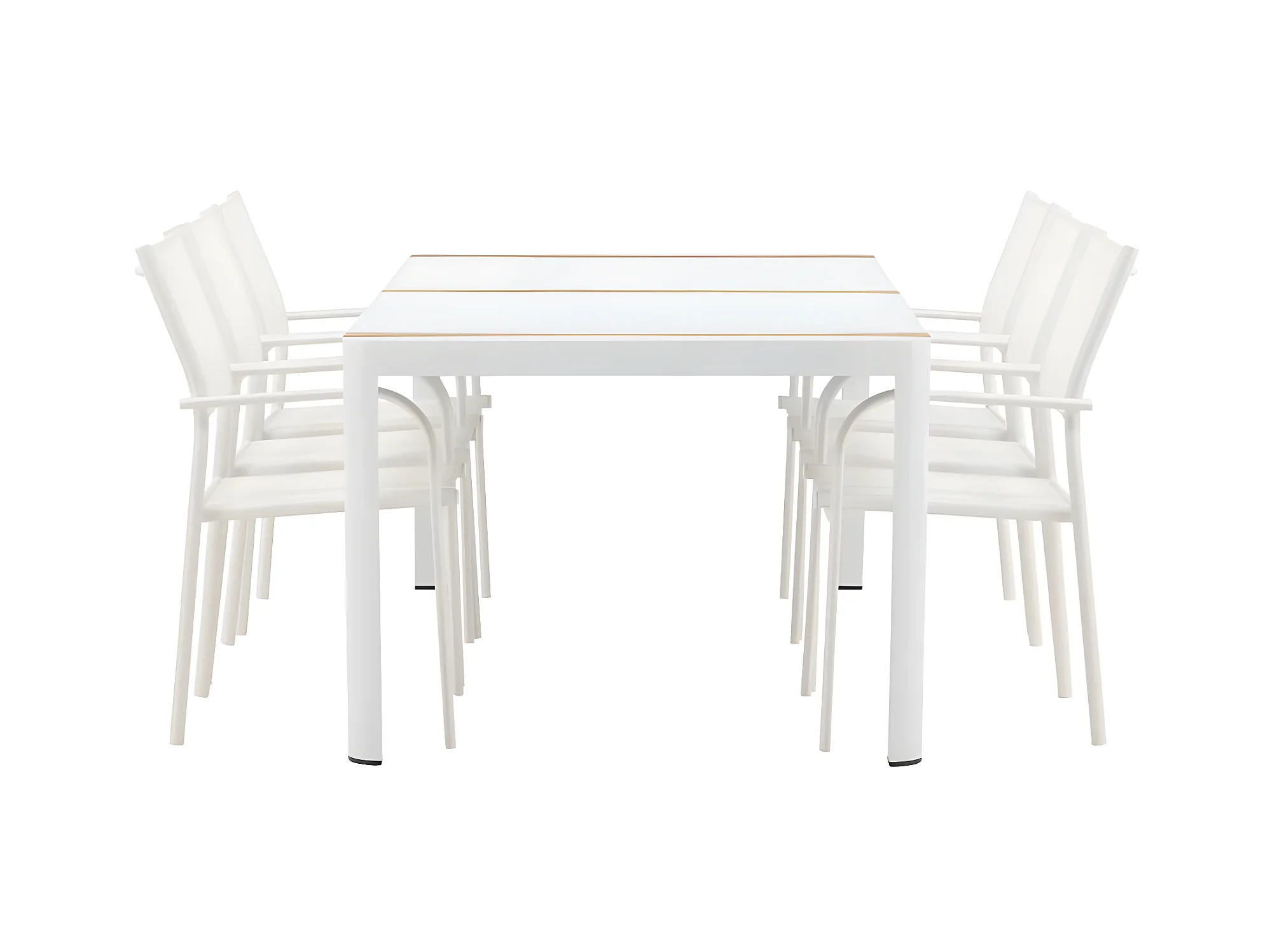 Togo tuinmeubelset tafel 100x200cm wit, 6 stoelen Santorini wit.