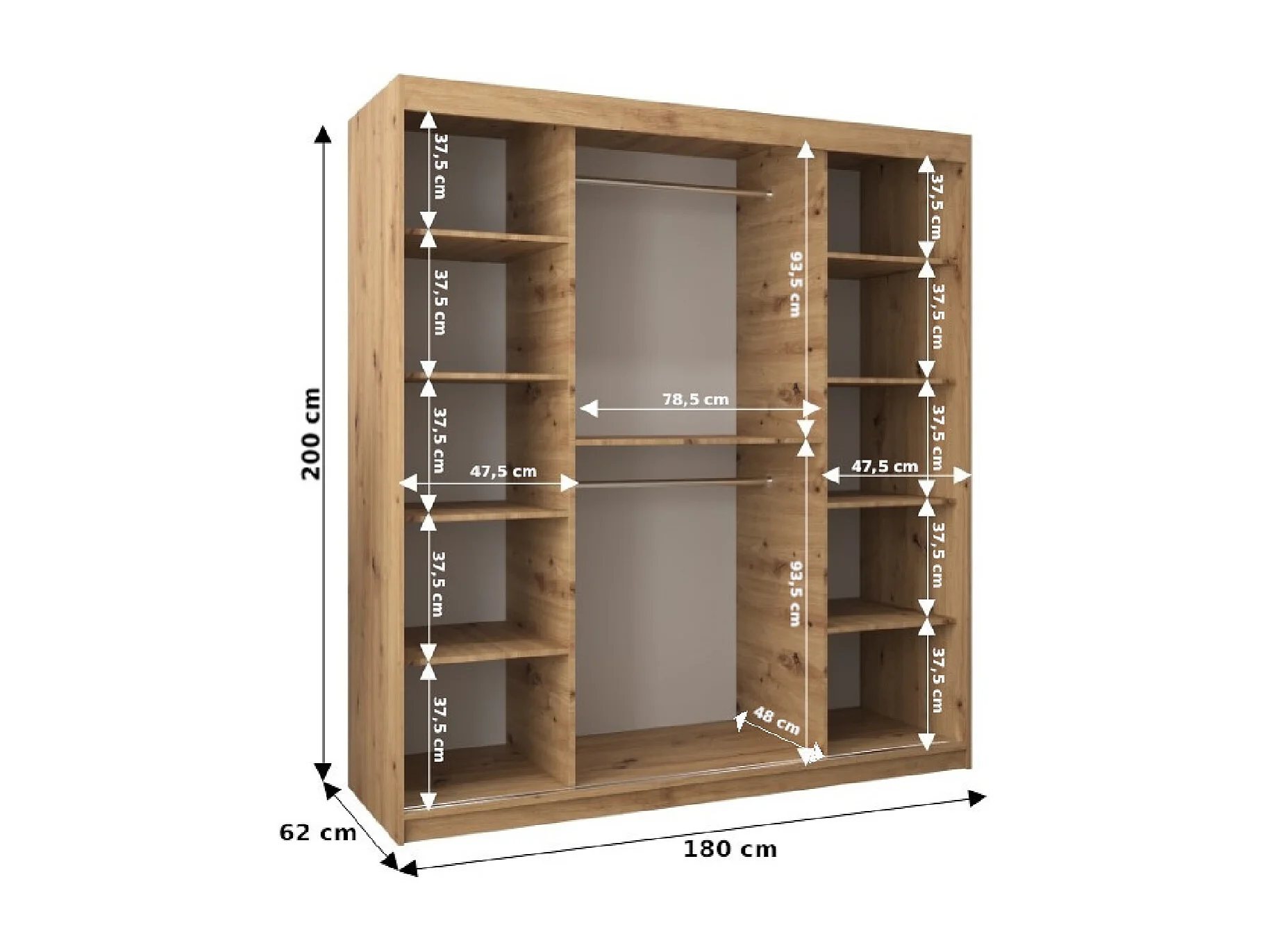 Tokyo 3 kledingkast met schuifdeuren 200/180/62 2 deuren (artisan/artisan)