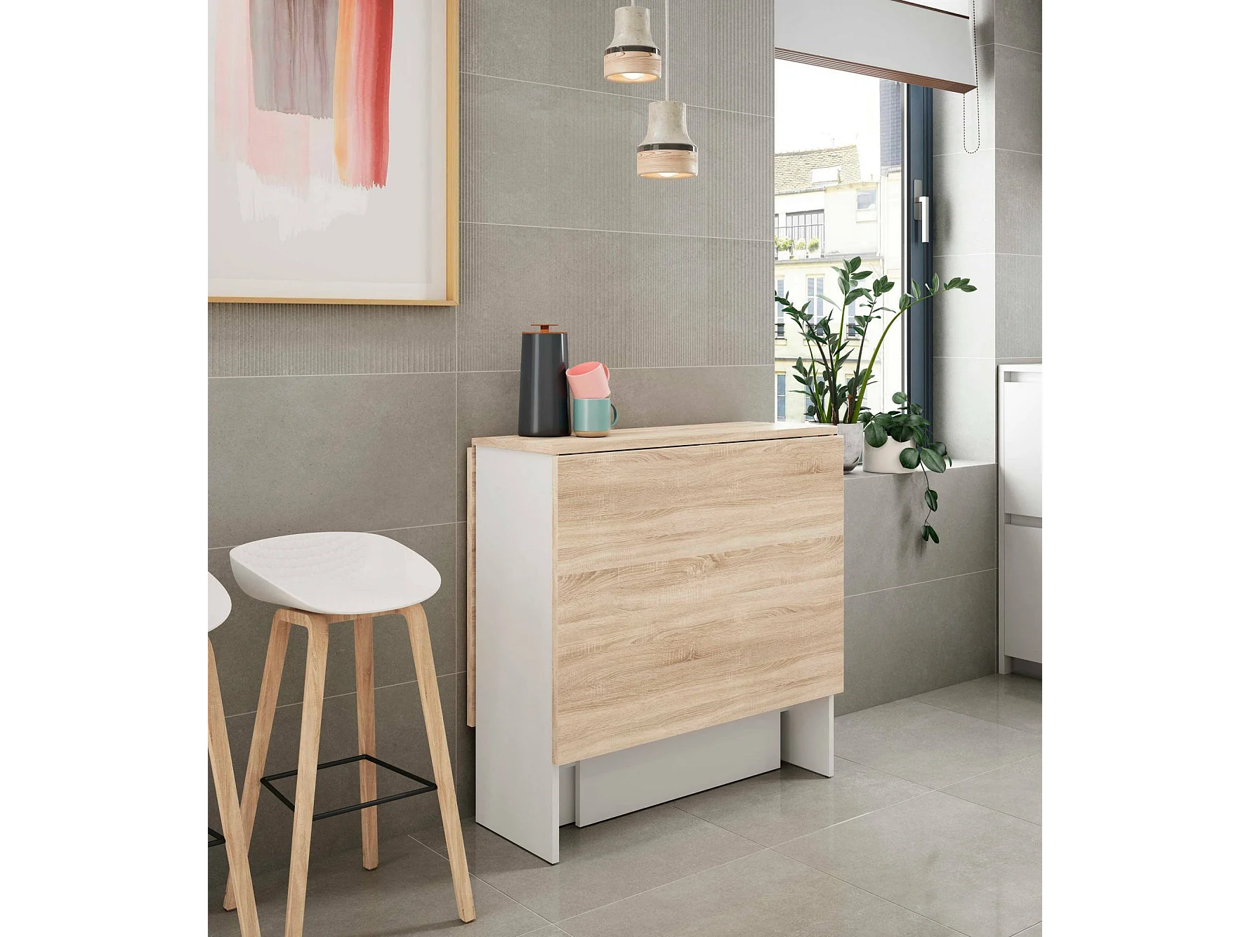 Toledo uitschuifbare tafel, Opklapbare eettafel met opklapbaar blad, Opvouwbare bijzettafel, 31x77h78 cm, Wit en Eiken