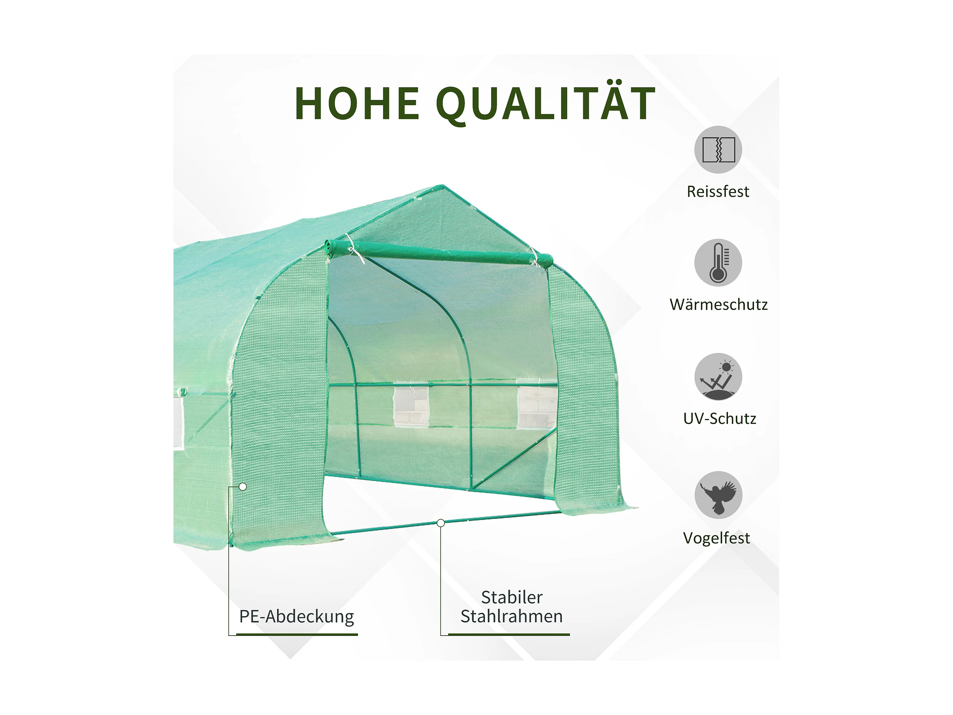 Tomatenkas met zadeldak, stalen frame, groen polyester (595x300x200 cm)