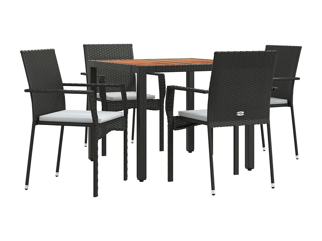 Arvild 5-delige Tuinset met kussens poly rattan zwart