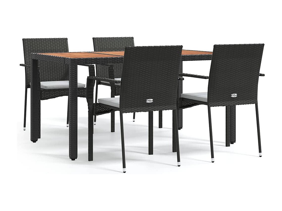 Arvild 5-delige Tuinset met kussens poly rattan zwart