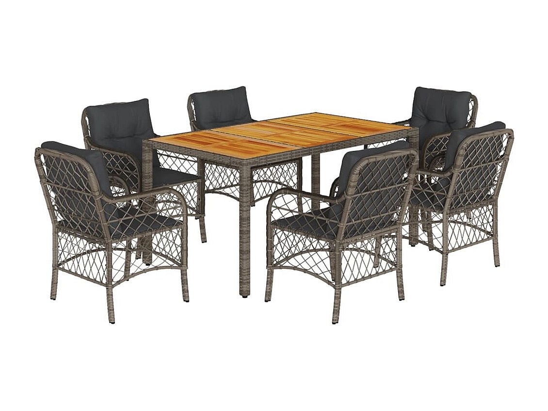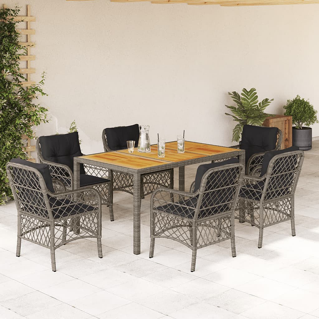 Les Mureaux 7-delige Tuinset met kussens poly rattan en acaciahout grijs
