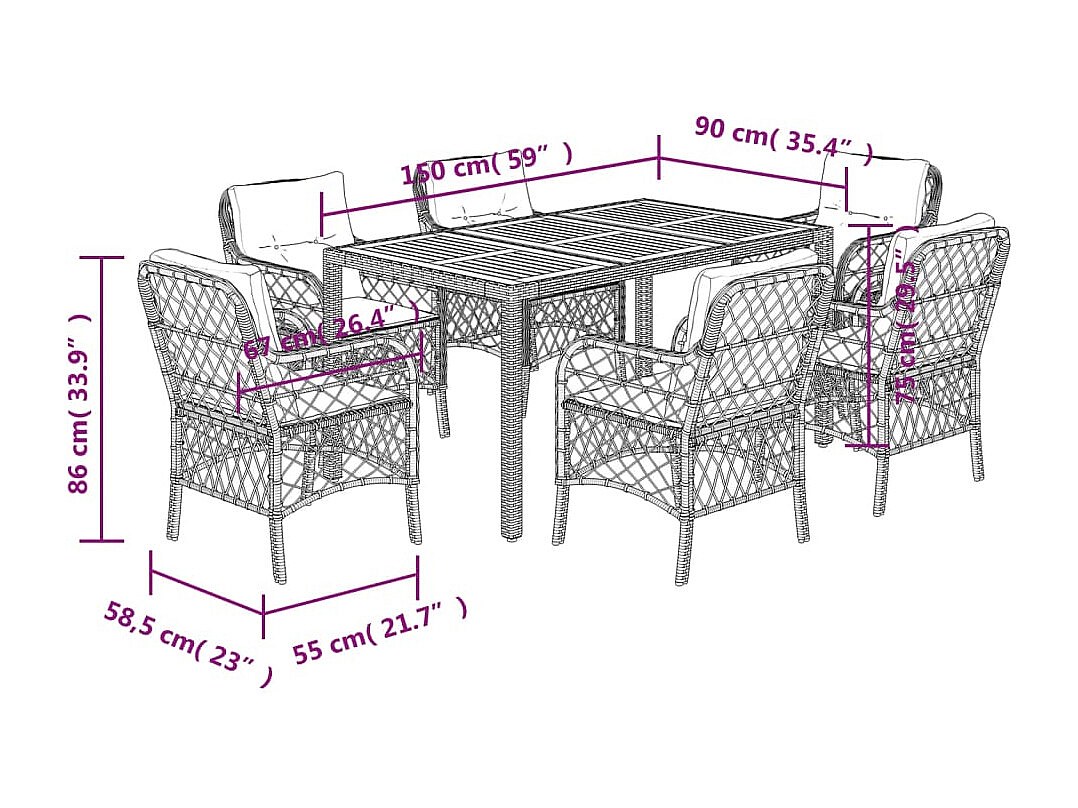 Magnir 7-delige Tuinset met kussens poly rattan grijs