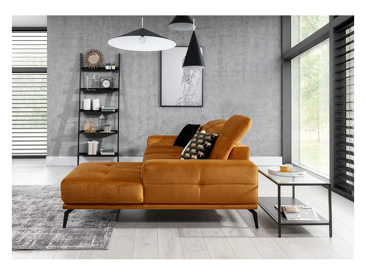 Torpille 5-zits donkerbruin fluweel rechter hoekbank 265 cm