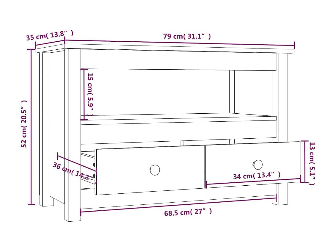 Trace Logan Tv-meubel 79x35x52 cm massief grenenhout wit