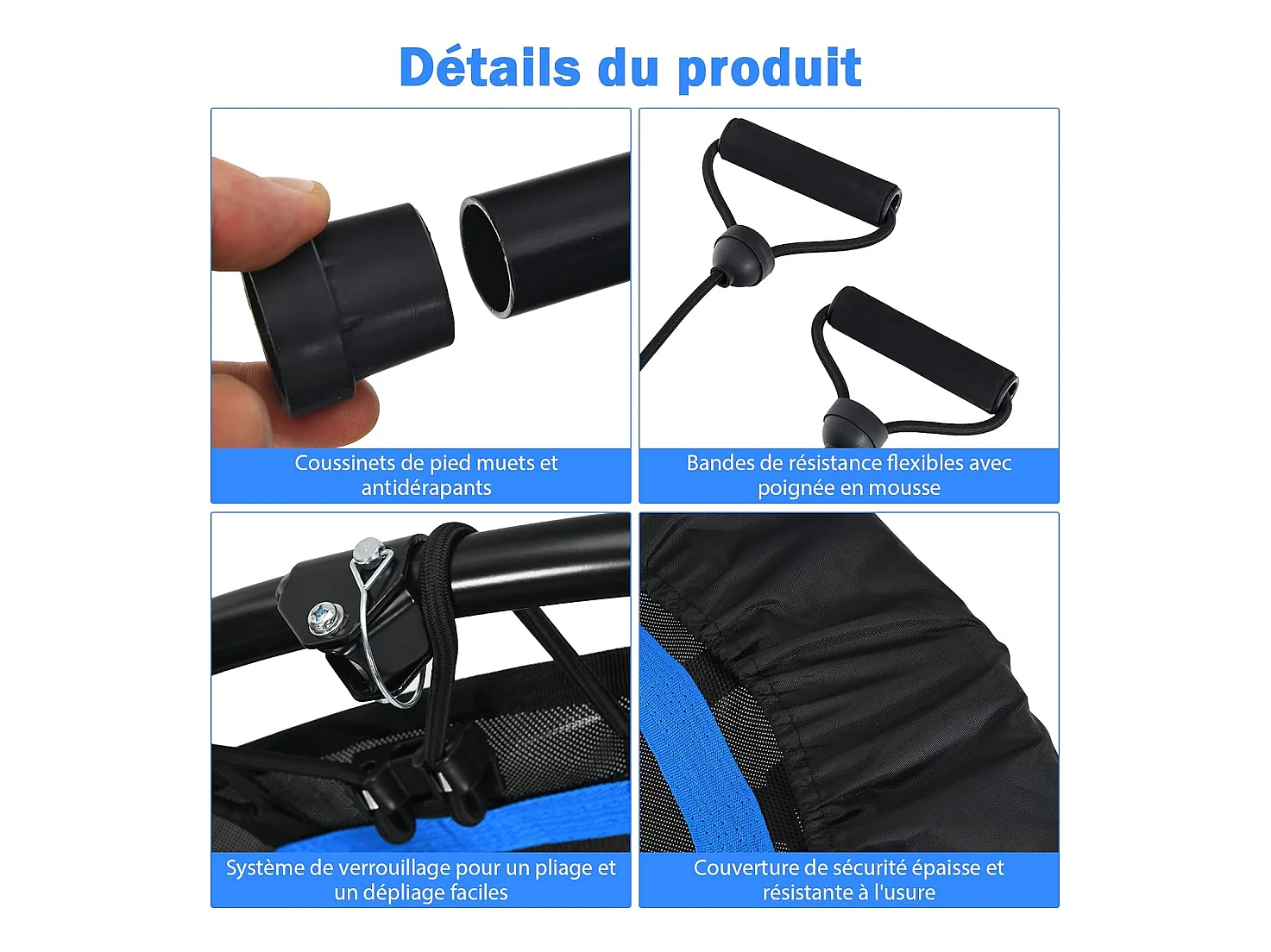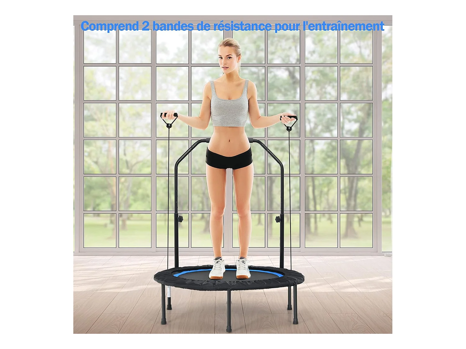 Trampoline de Fitness Pliable 101cm avec 2 Bandes de Résistance Main Courante Hauteur Réglable Charge 150 kg pour Enfants