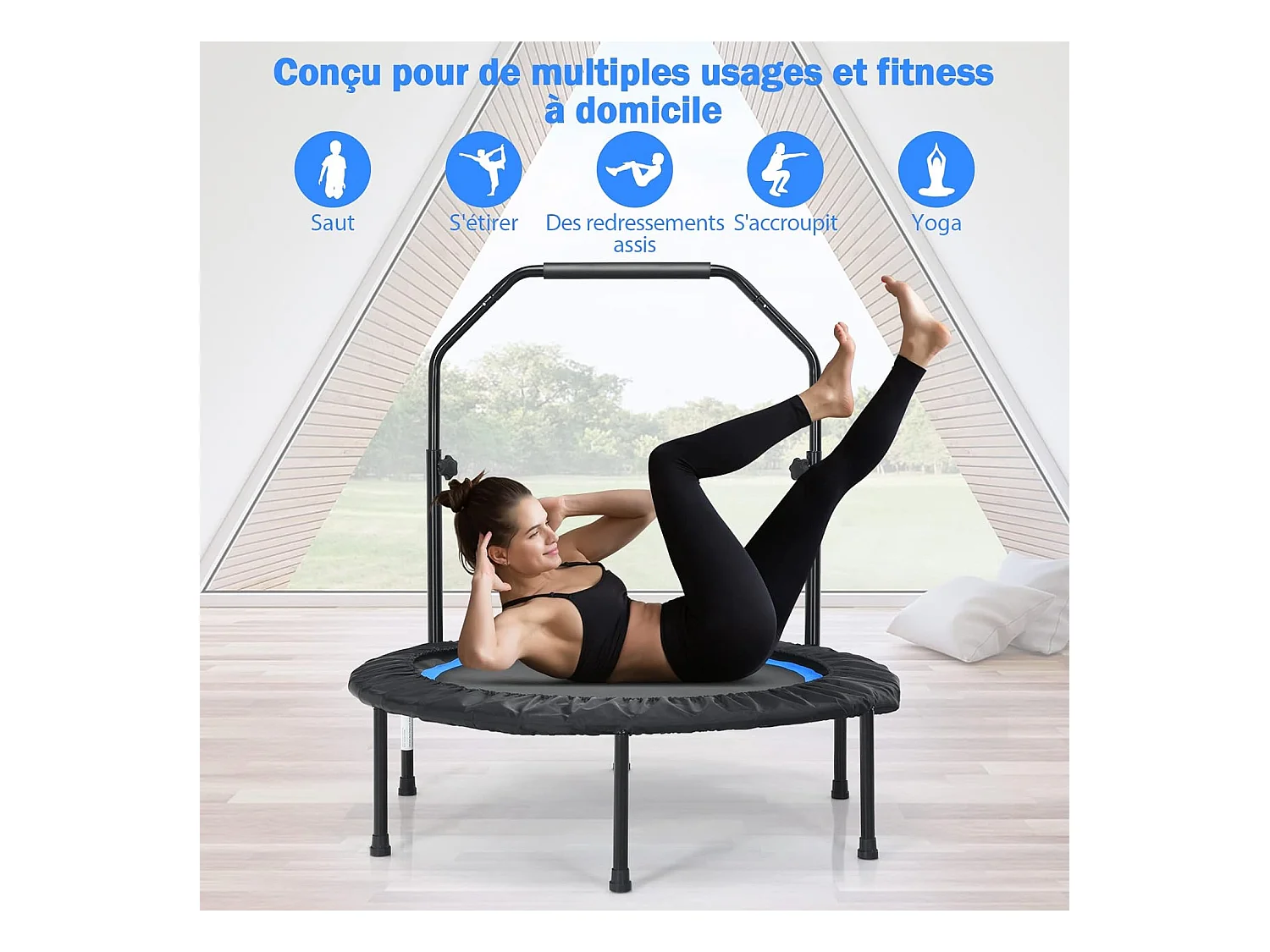 Fitness-trampoline SucceBuy, 1290 mm, Laadvermogen 205 kg, met 4-voudig aanpasbare schuimhandgreep