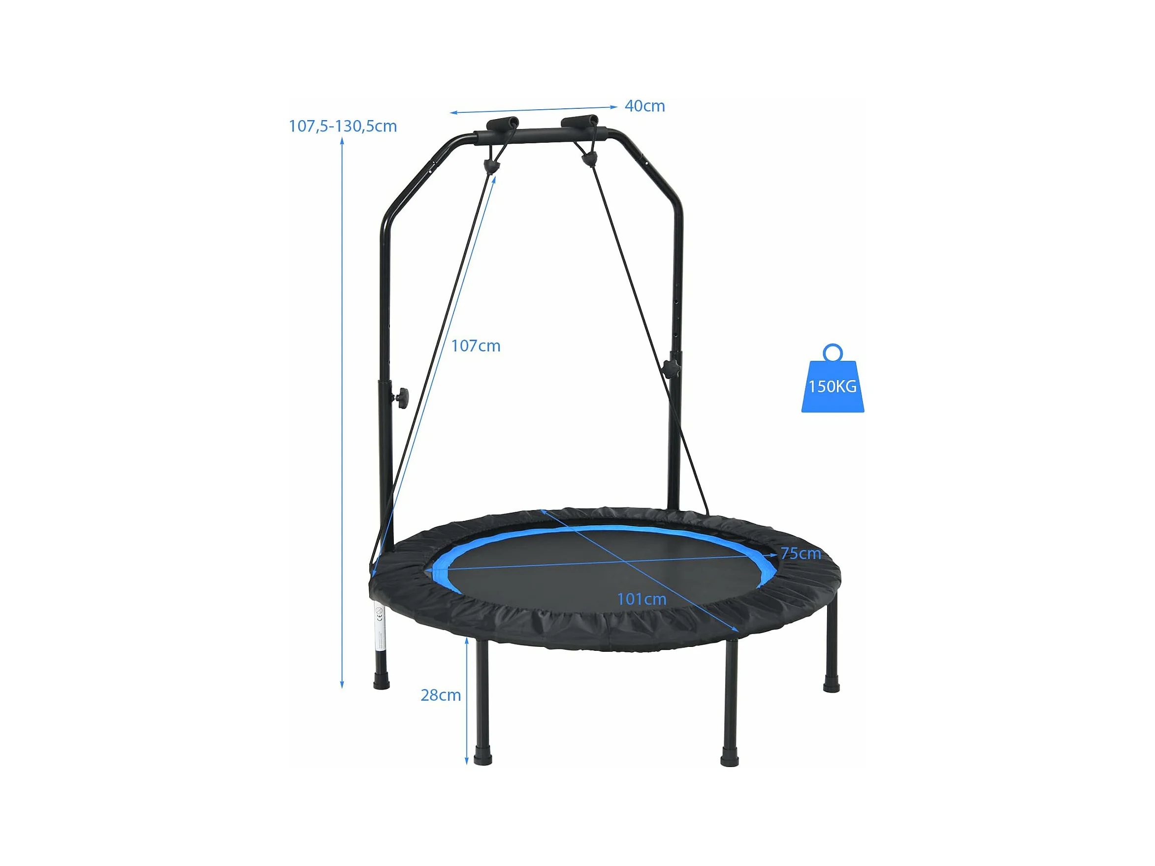 Trampoline de Fitness Pliable 101 cm avec Main Courante en Mousse Hauteur Réglable sur 4 Niveaux Charge 150 kg pour Adultes