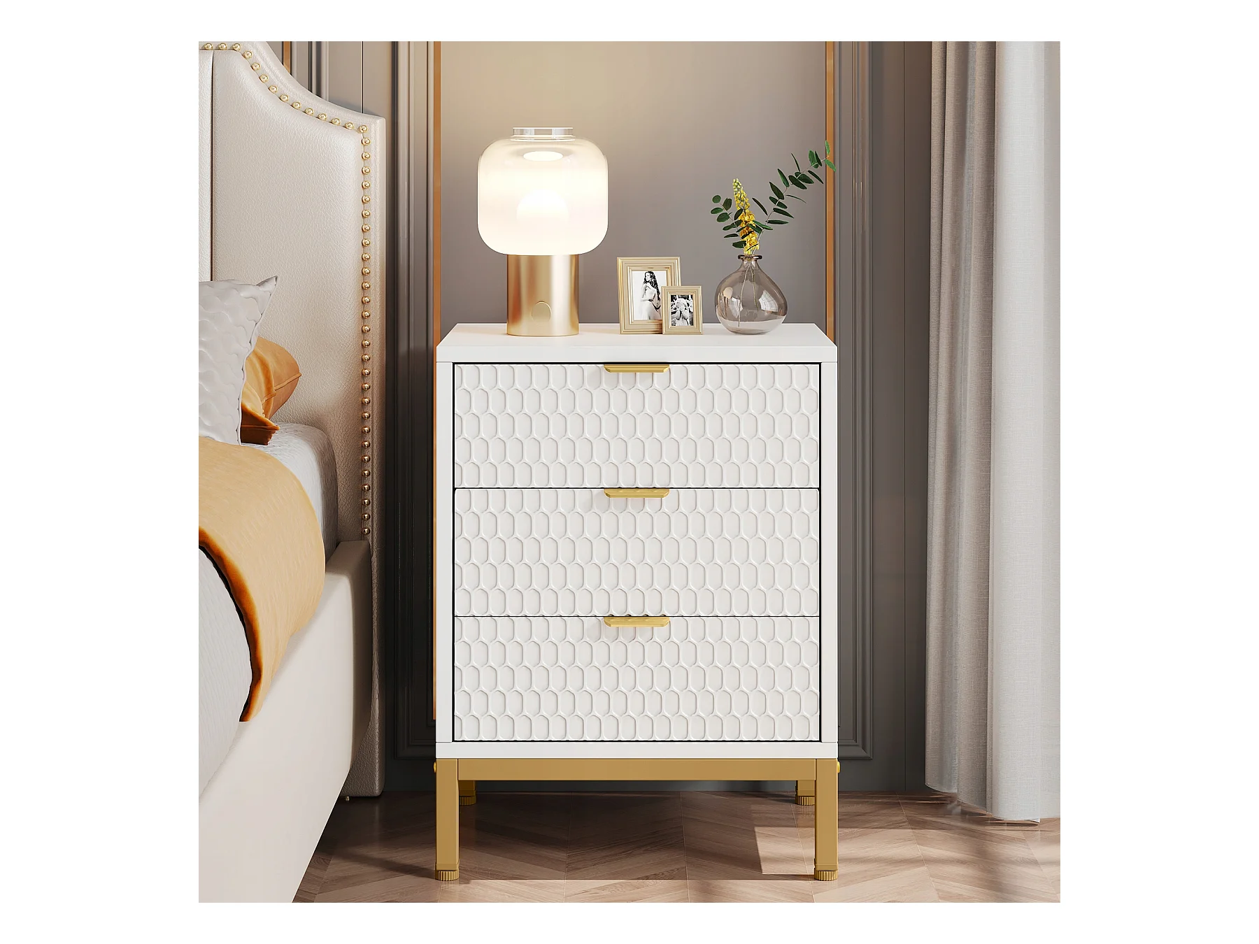 Tribesigns 25,75" hoog modern nachtkastje met 3 lades, eigentijdse bijzettafel met opbergruimte voor slaapkamer, woonkamer, wit en goud