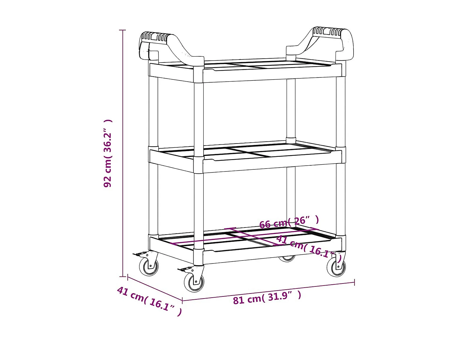 Trolley 3-laags 81x41x92 cm aluminium grijs