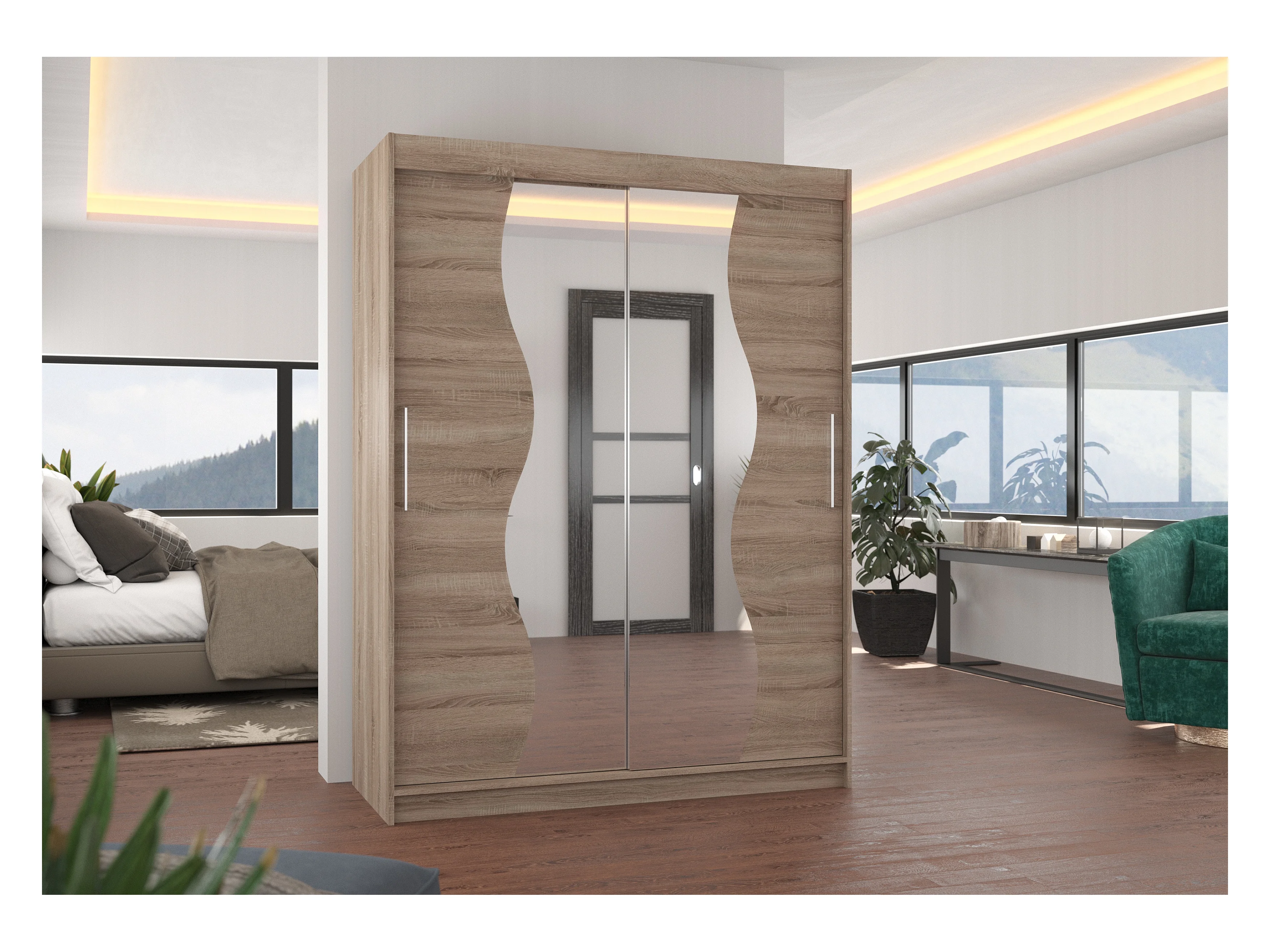 Truffelhouten slaapkamerkast 2 schuifdeuren met spiegel Renka 150 cm