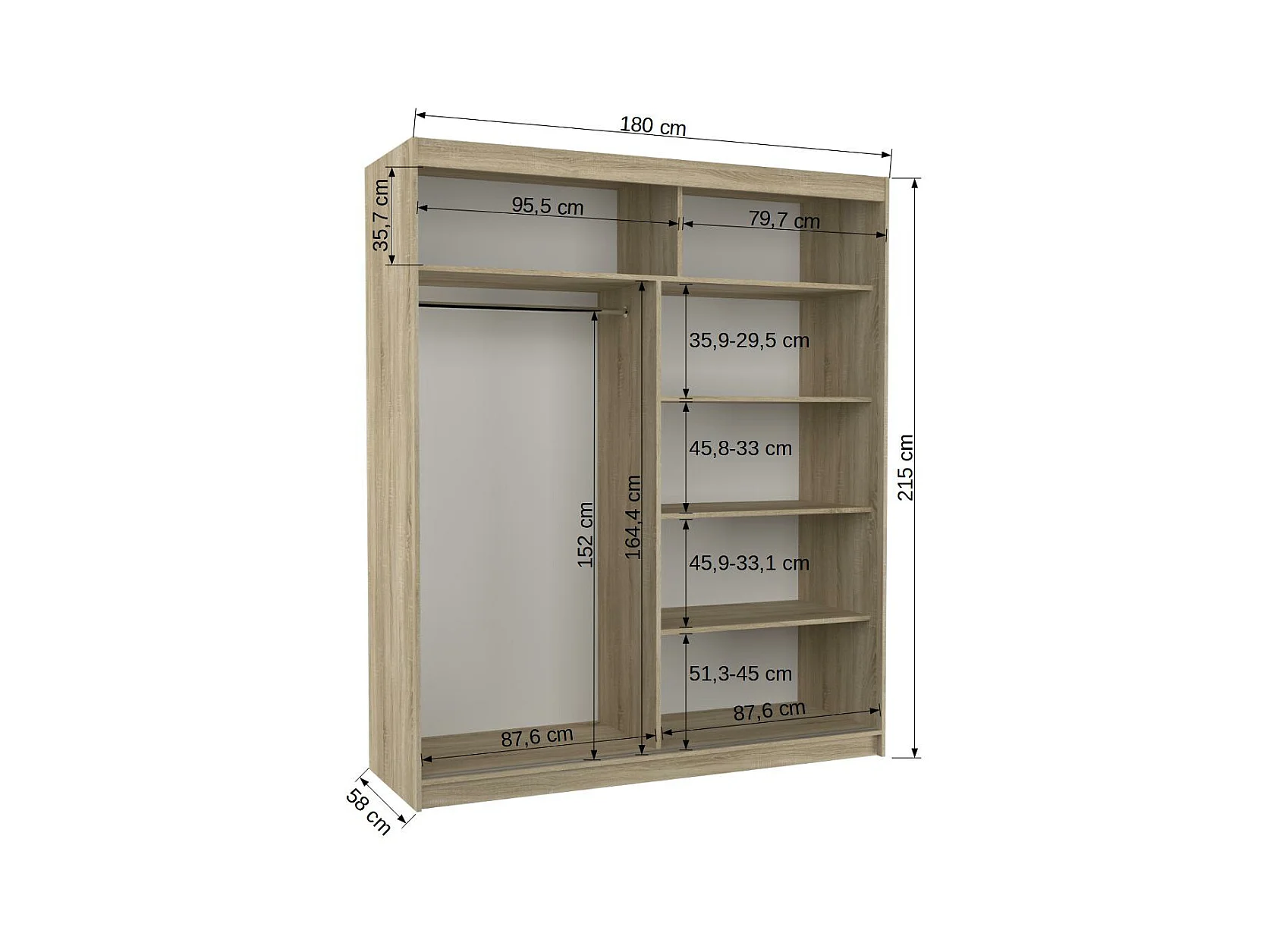Natuurlijke slaapkamerkast met 2 schuifdeuren Kelly 180 cm